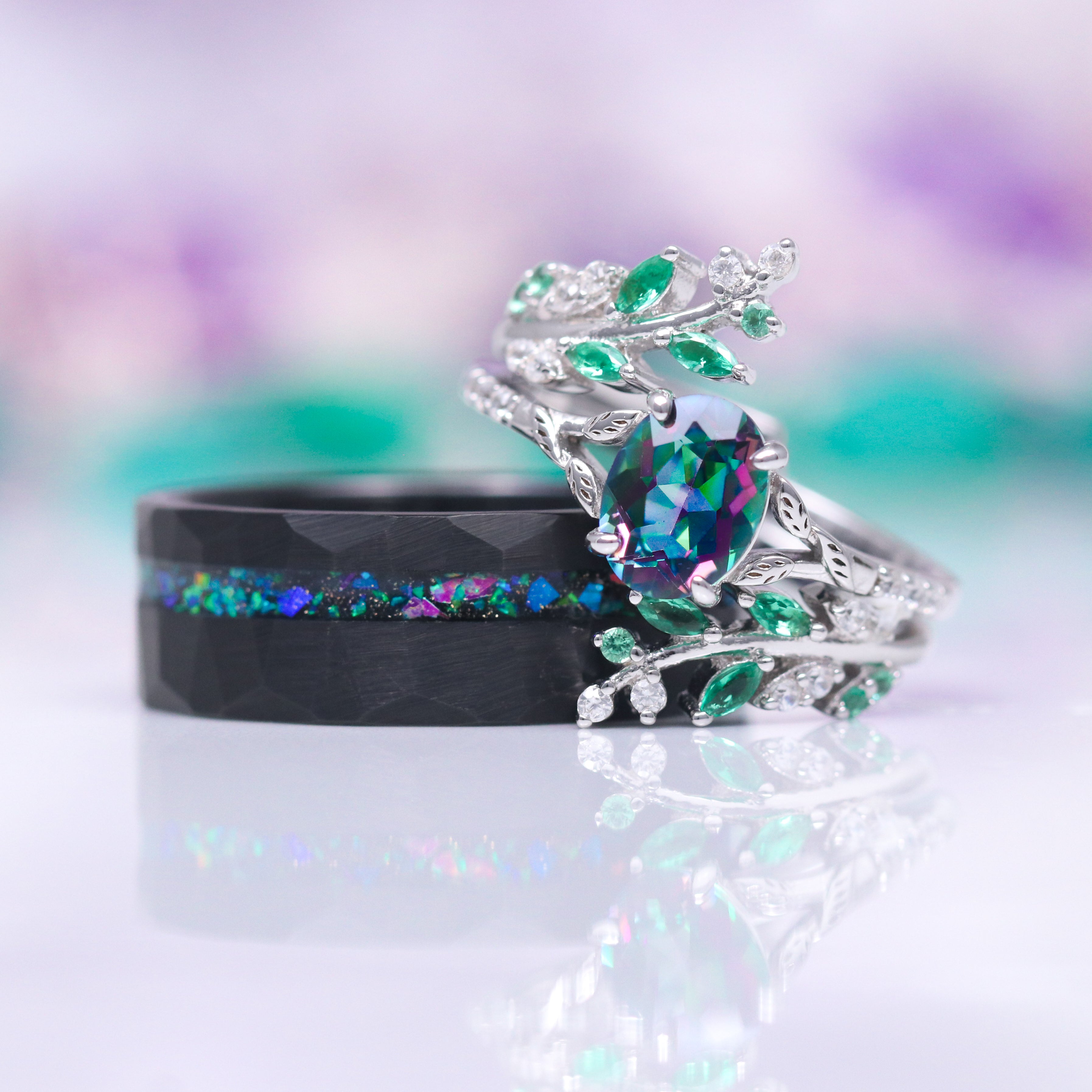 Mystic Opal Wedding Band- 8MM Black Tungsten