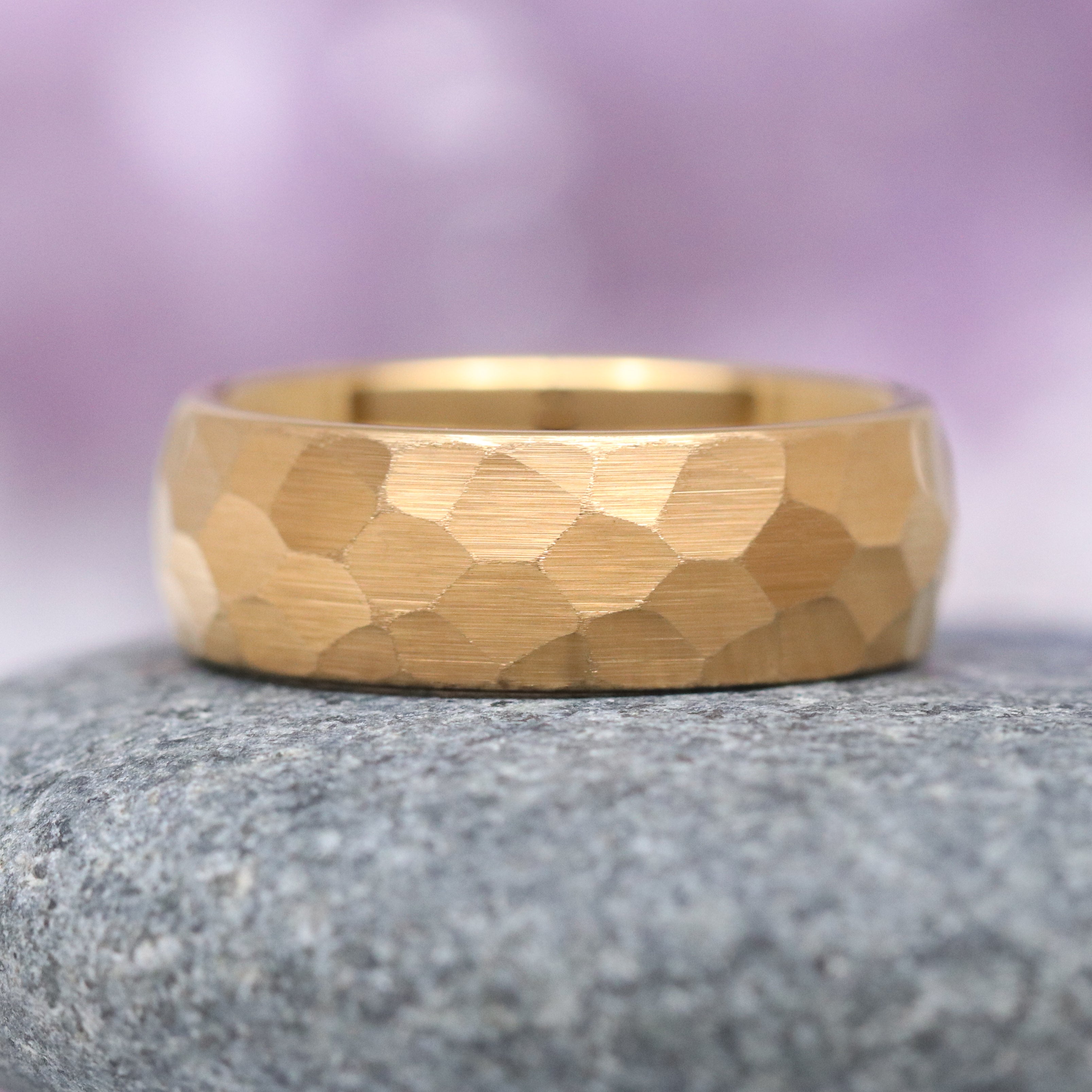 Hammered Gold Wedding Band in Yellow Gold Tungsten Carbide (8mm)