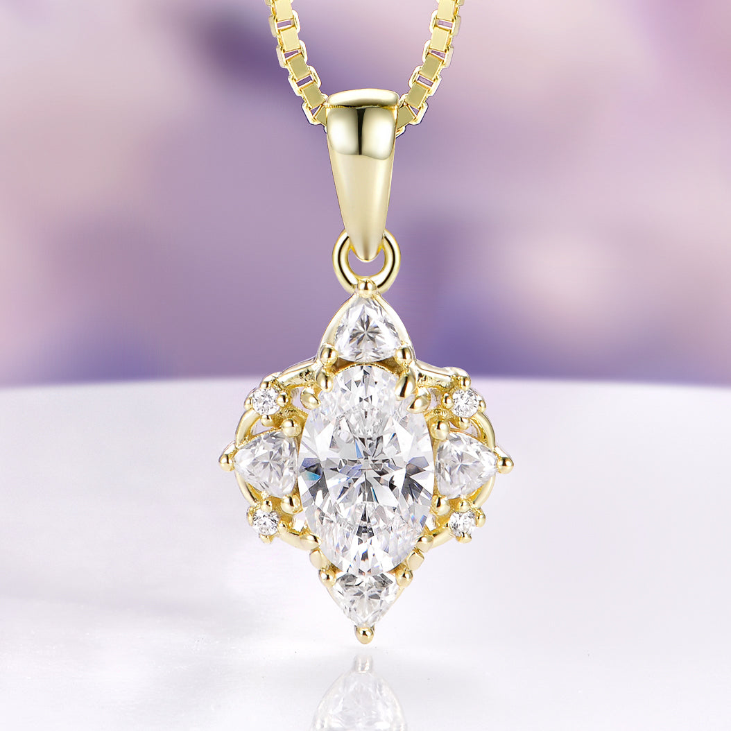 Crafted with a solid 925 sterling silver base and finished in rich 14K yellow gold vermeil, this necklace offers the luxurious look of fine gold jewelry with enhanced durability for everyday wear. The premium moissanite gemstones are D color and VVS1 clarity, delivering exceptional fire, brilliance, and diamond-like sparkle—making this piece a breathtaking diamond alternative.
