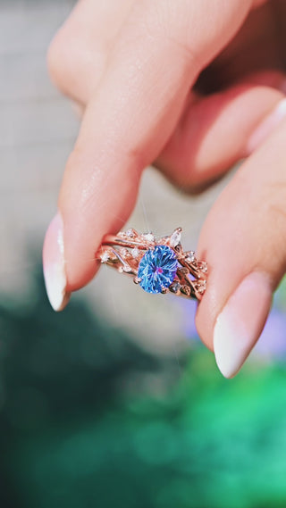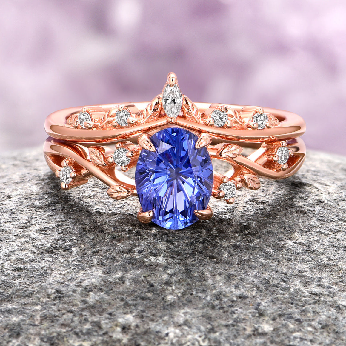 Fantasy Cut Sapphire Leaf Ring Set- 14K Solid Rose Gold