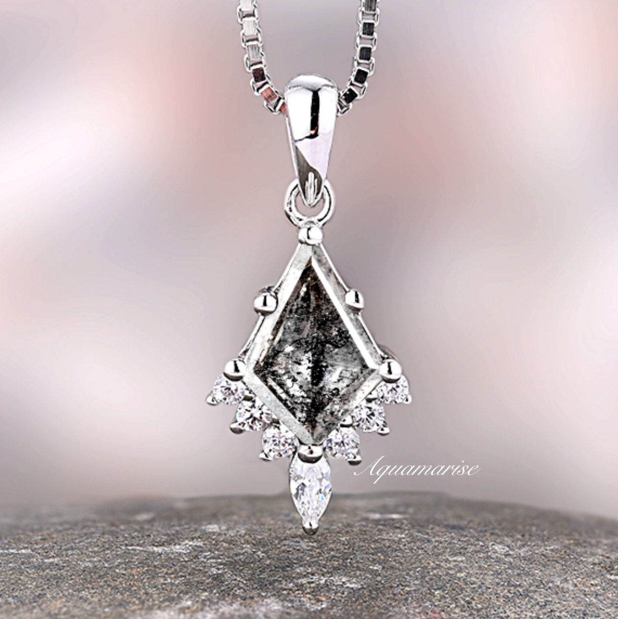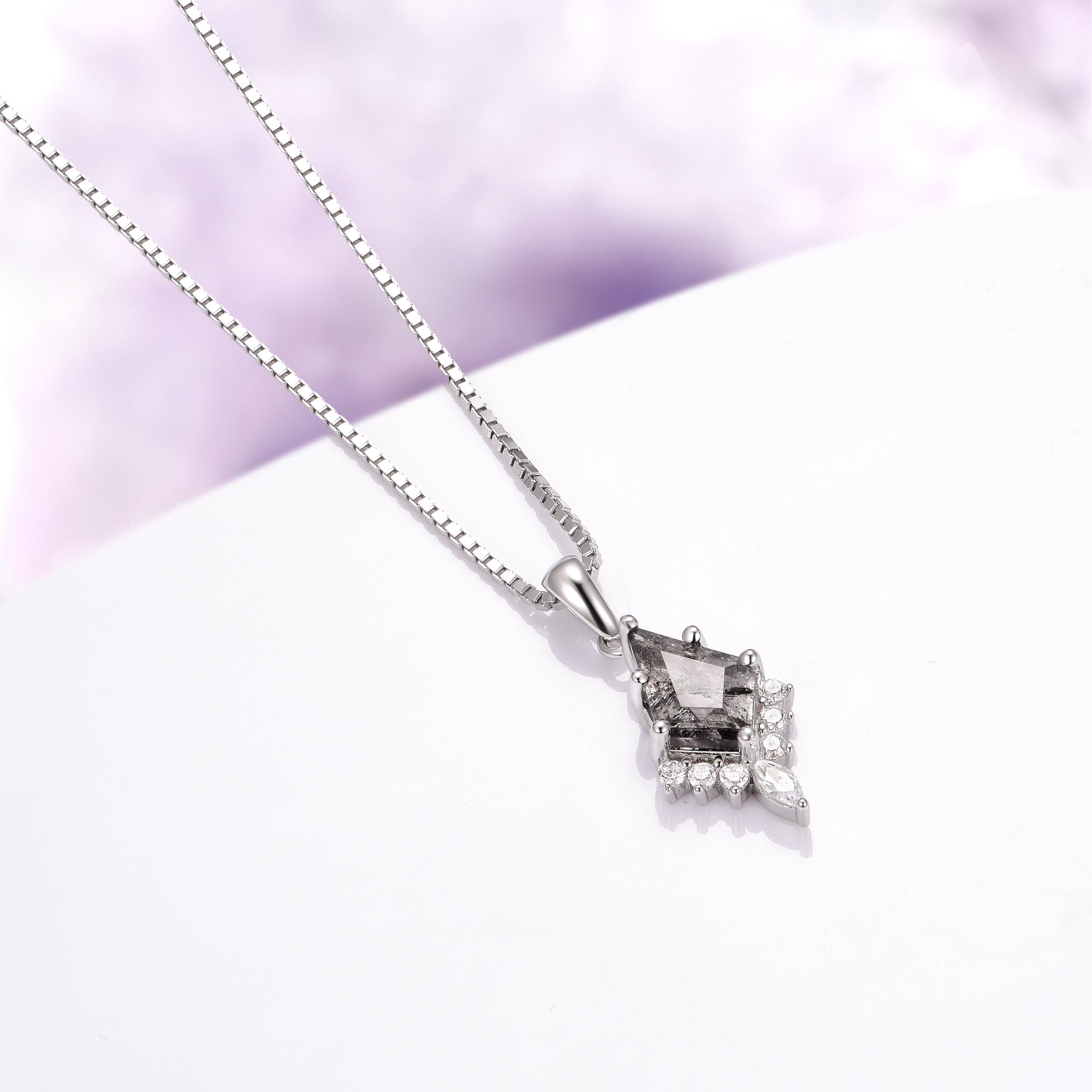 A gorgeous vintage-inspired natural Herkimer diamond pendant necklace with a kite cut, minimalist geometric design, and made of 925 sterling silver is a truly exquisite piece of jewelry.