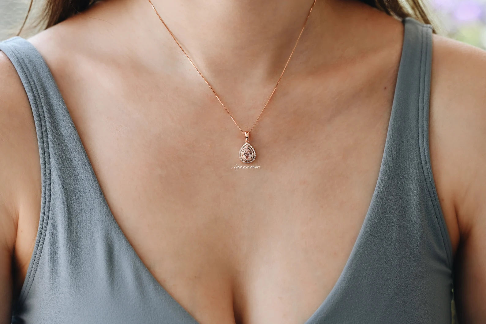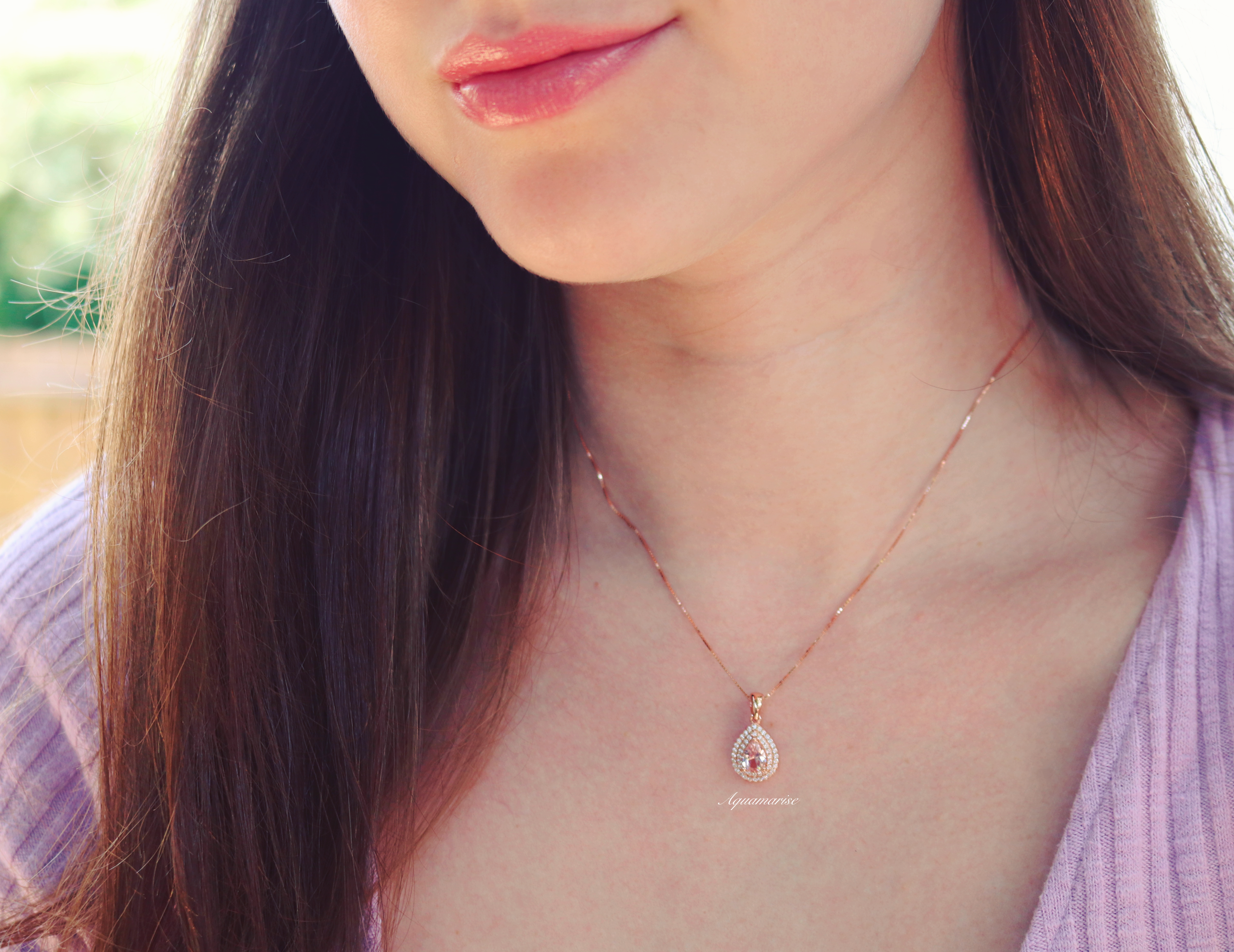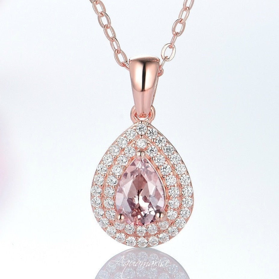 Teardrop Morganite Pendant Necklace in 14K Rose Gold Vermeil
