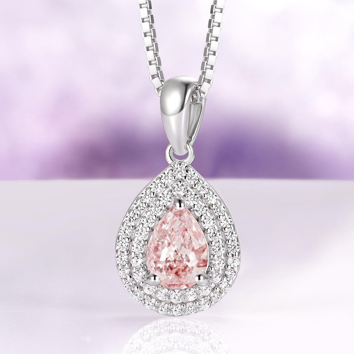 Elevate any look with the delicate beauty of this blush pink morganite halo pendant. Crafted in solid 925 sterling silver, this necklace features a captivating teardrop-cut morganite framed by a sparkling halo of simulated diamonds, offering timeless elegance with a romantic touch.