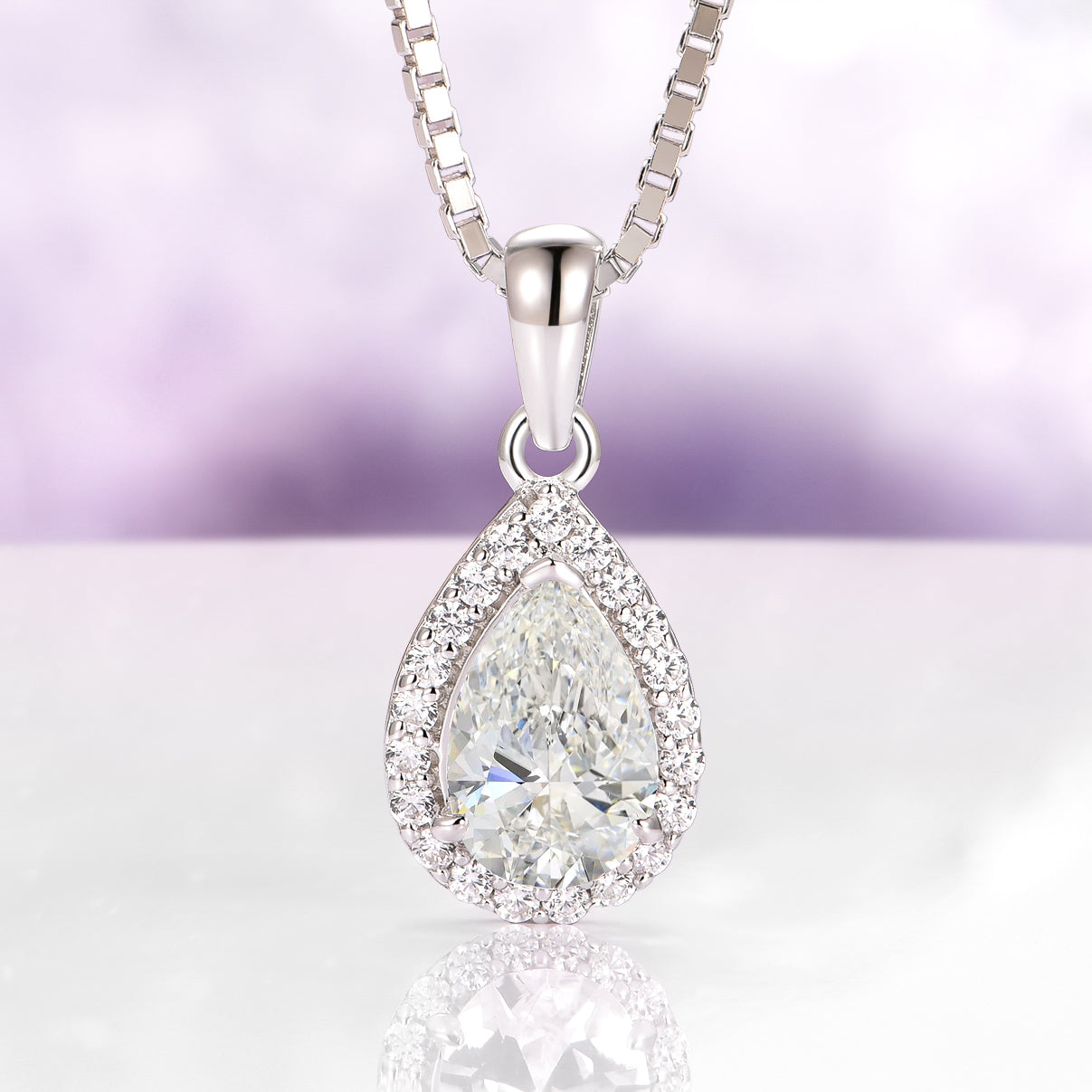 Add a touch of timeless elegance to your jewelry collection with this stunning halo teardrop white sapphire necklace. Crafted from solid 925 sterling silver, this piece features a dazzling lab-grown white sapphire framed in a delicate halo design, creating the perfect blend of simplicity and sophistication.