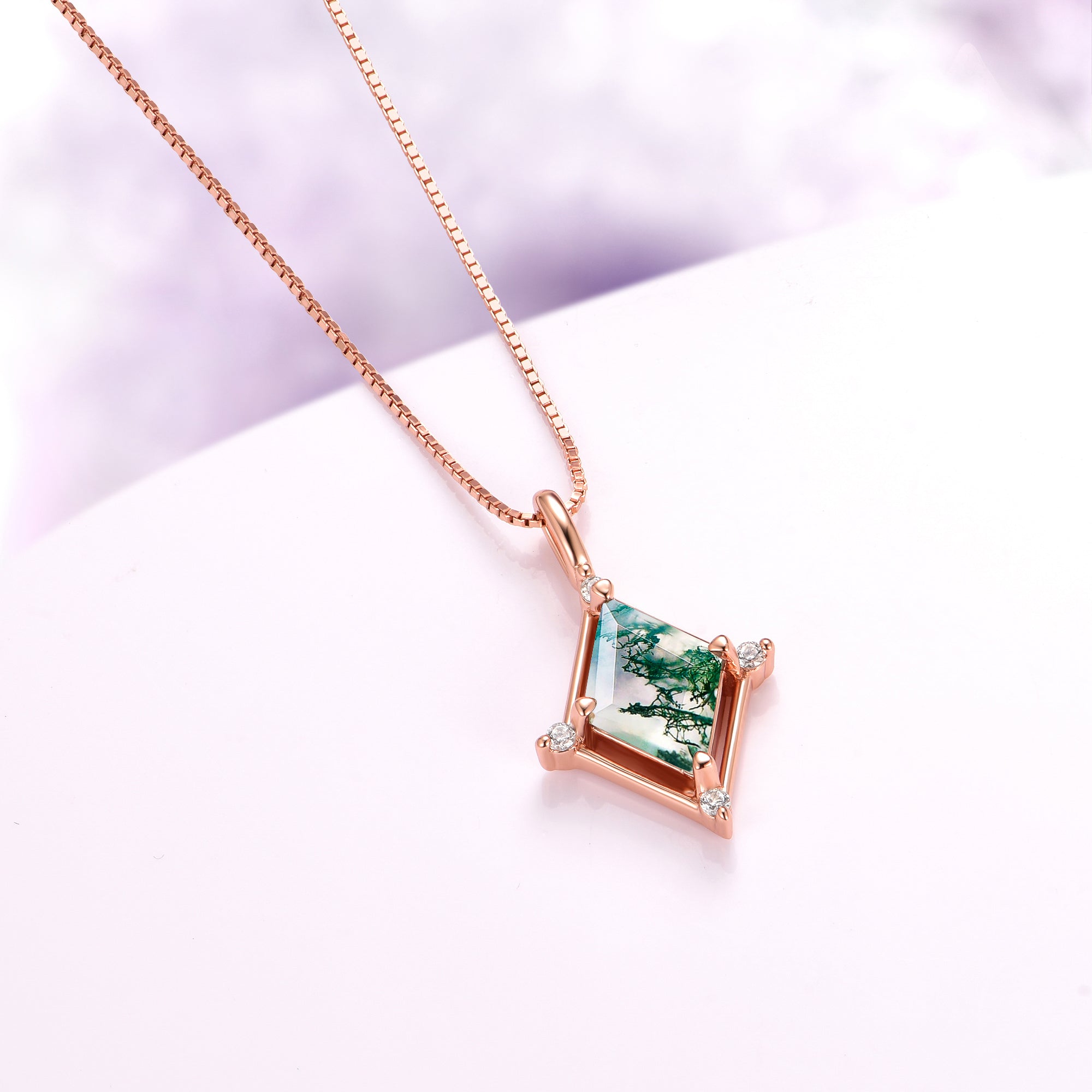 Kite Green Moss Agate Necklace in 14K Rose Gold Vermeil