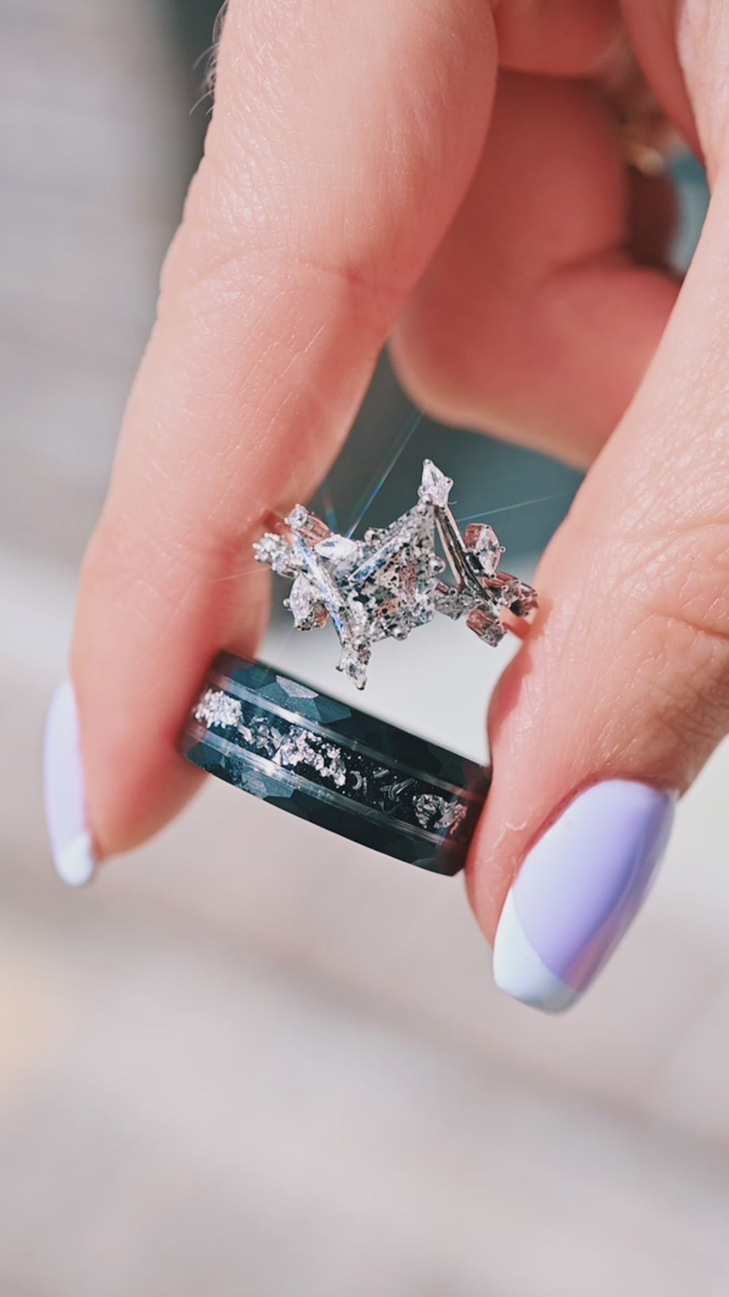 Galaxy Salt and Pepper (Herkimer) Diamond & Meteorite Couples Ring Set