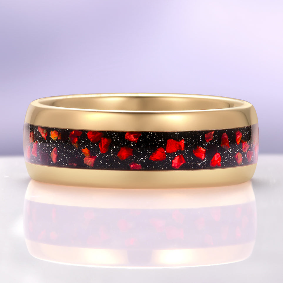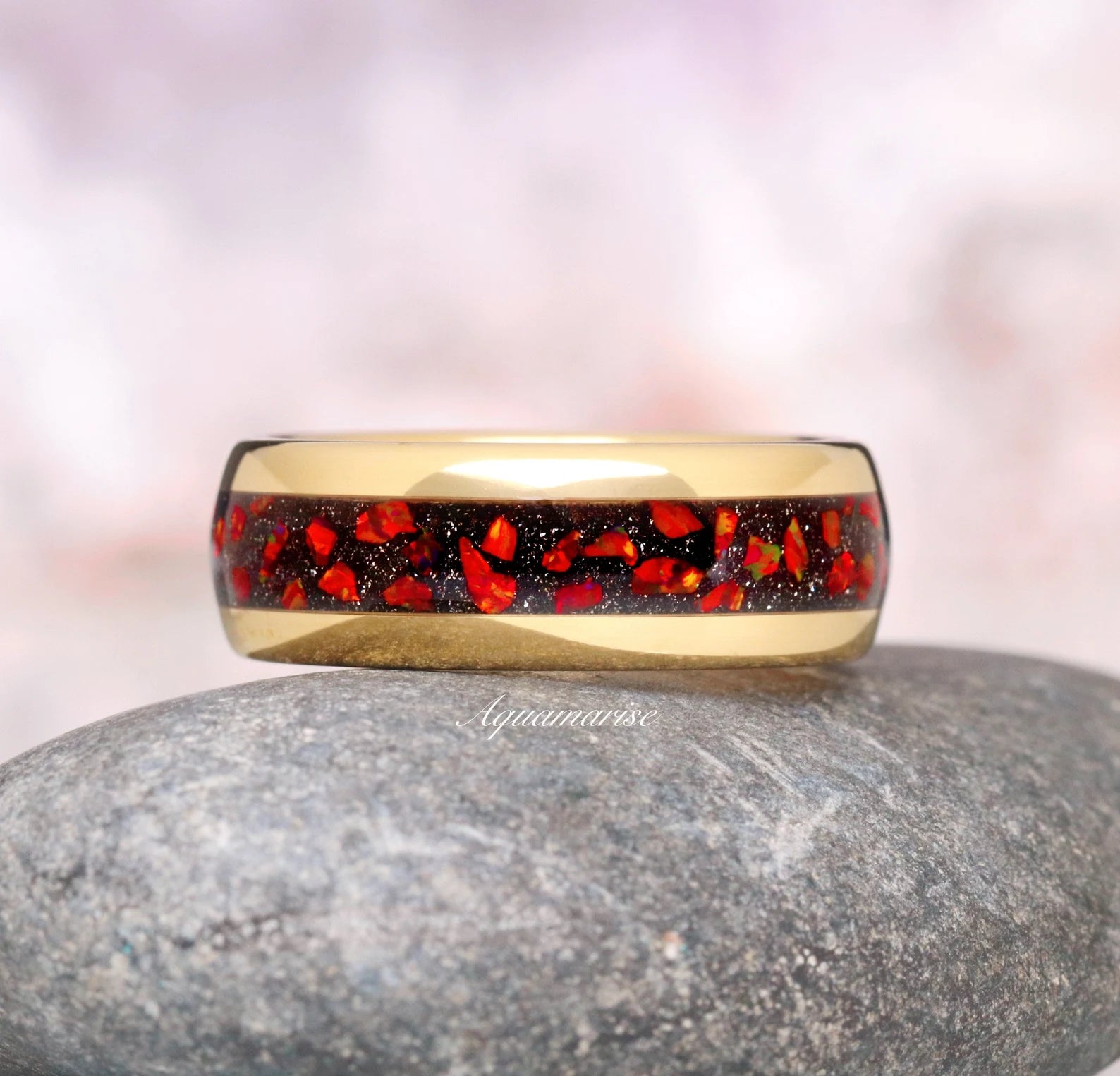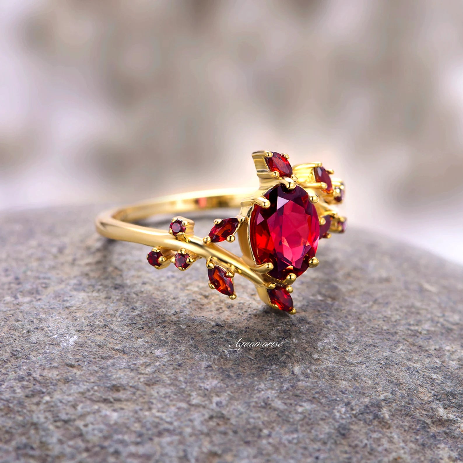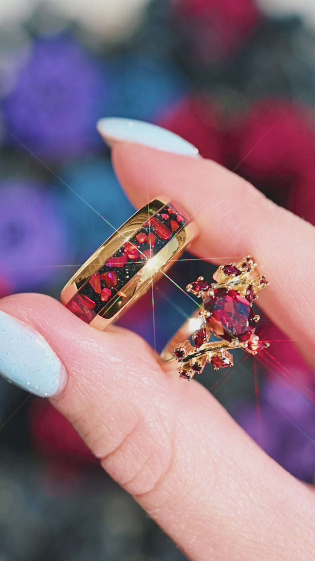 Natural Garnet & Red Fire Opal Leaf Couples Ring Set