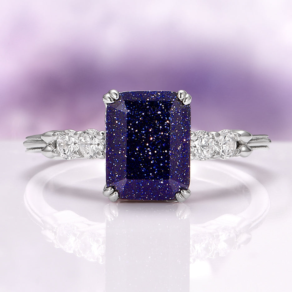 ► Her Ring: Romantic and elegant, her 925 solid sterling silver engagement ring showcases a 7x9 mm (approx. 2.4 ct) emerald-cut natural sandstone center stone, accented by shimmering simulated diamonds (CZ). With its refined craftsmanship and vintage-inspired design, this piece symbolizes passion, strength, and timeless devotion.
