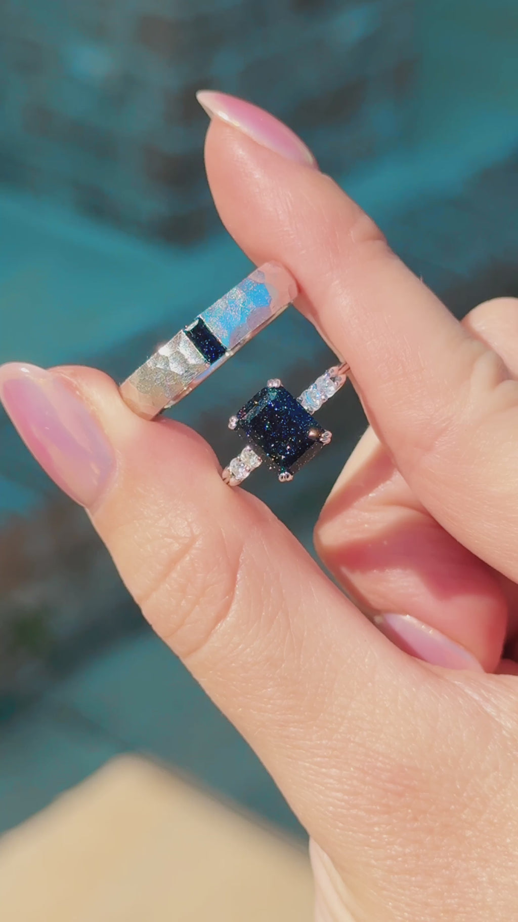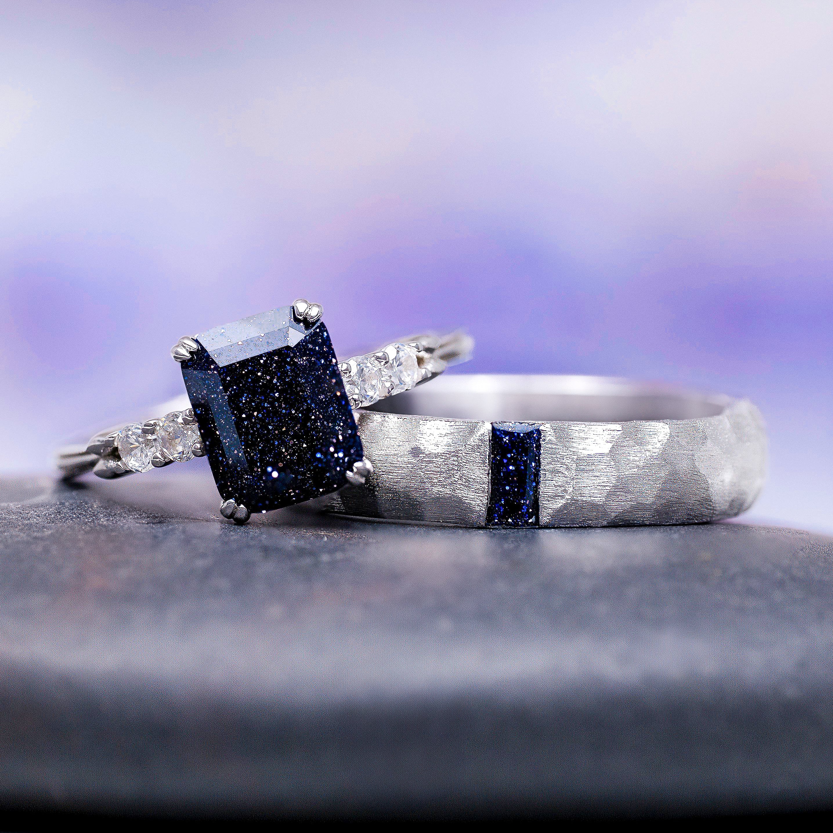 Celebrate your love with the Starry Night Galaxy Sandstone Couples Ring Set, a timeless union of warmth, strength, and devotion. Designed for couples who appreciate unique details, this set combines the shimmering beauty of natural sandstone with the classic elegance of sterling silver. Known as the “stone of ambition,” sandstone is believed to inspire confidence, energy, and vitality, making these rings a meaningful representation of love that shines with lasting brilliance.