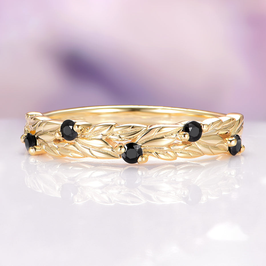 Black Moissanite Leaf Band in 14K Yellow Gold