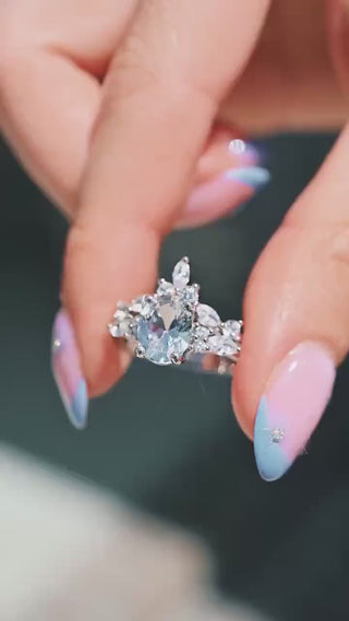The vintage-inspired setting, accented with shimmering simulated diamonds, creates a perfect balance of romance and modern elegance. Whether chosen as a non-traditional engagement ring or a promise ring, this set captures the essence of love and light—ideal for brides who adore understated luxury and a touch of magic.