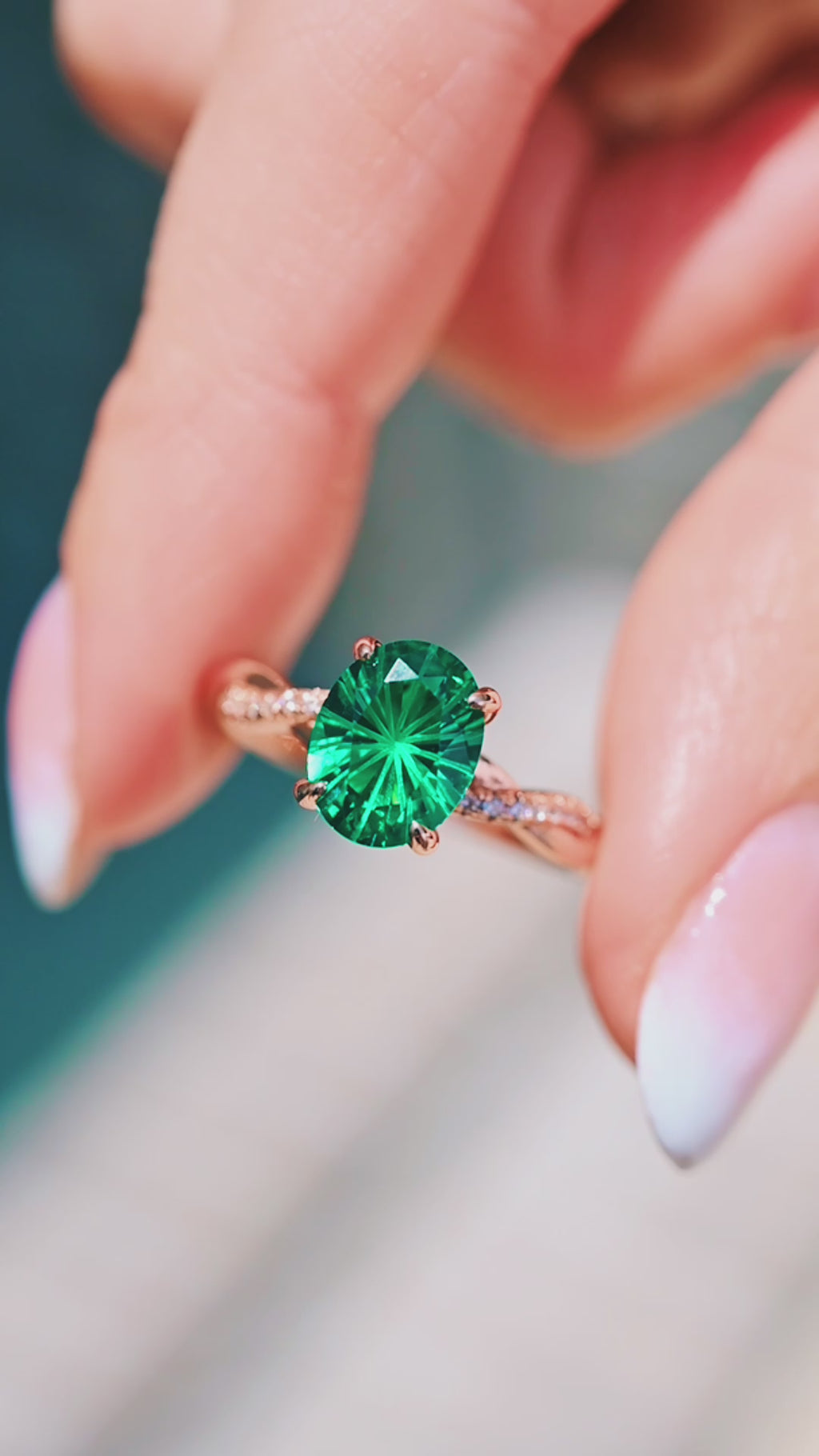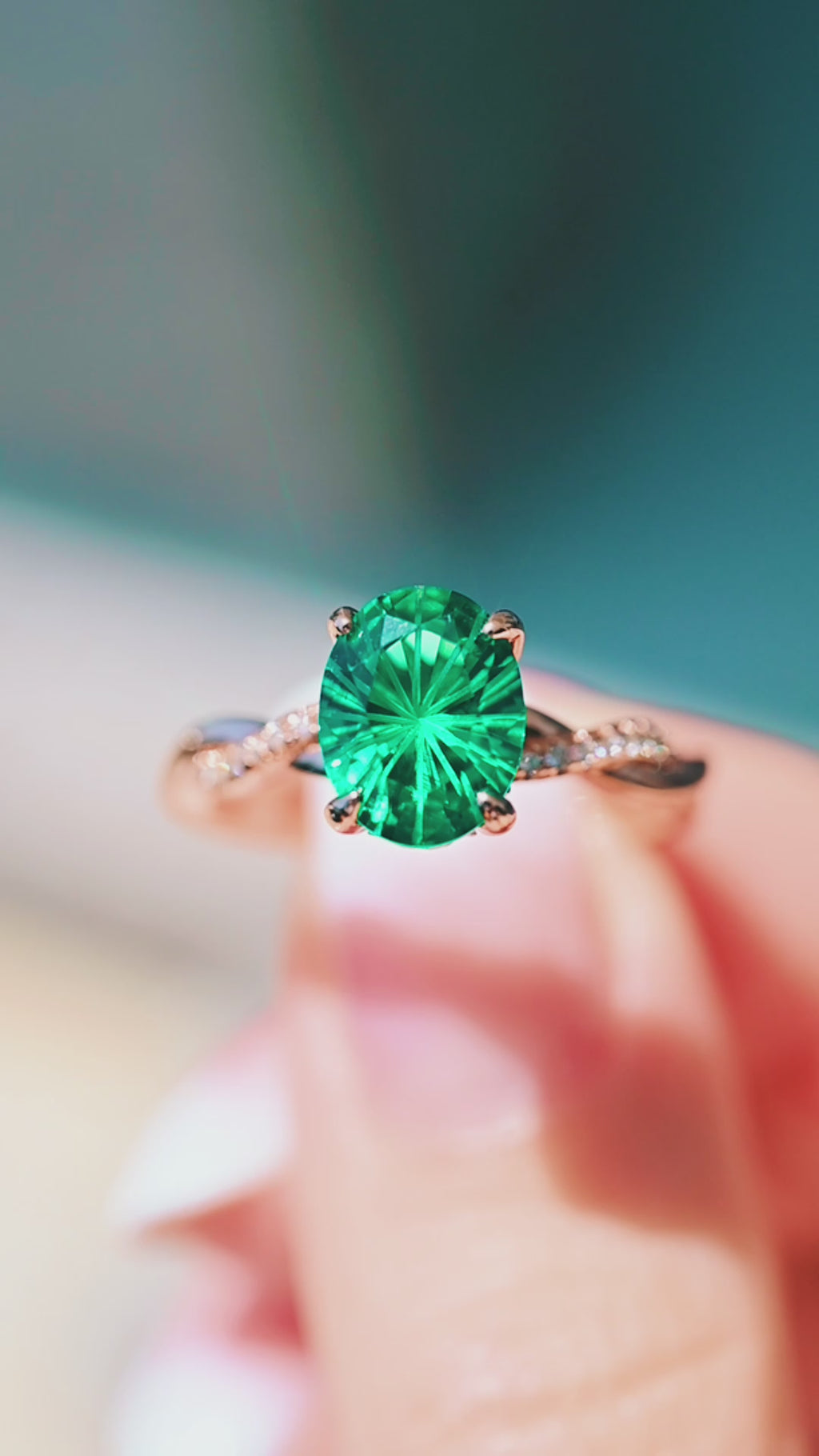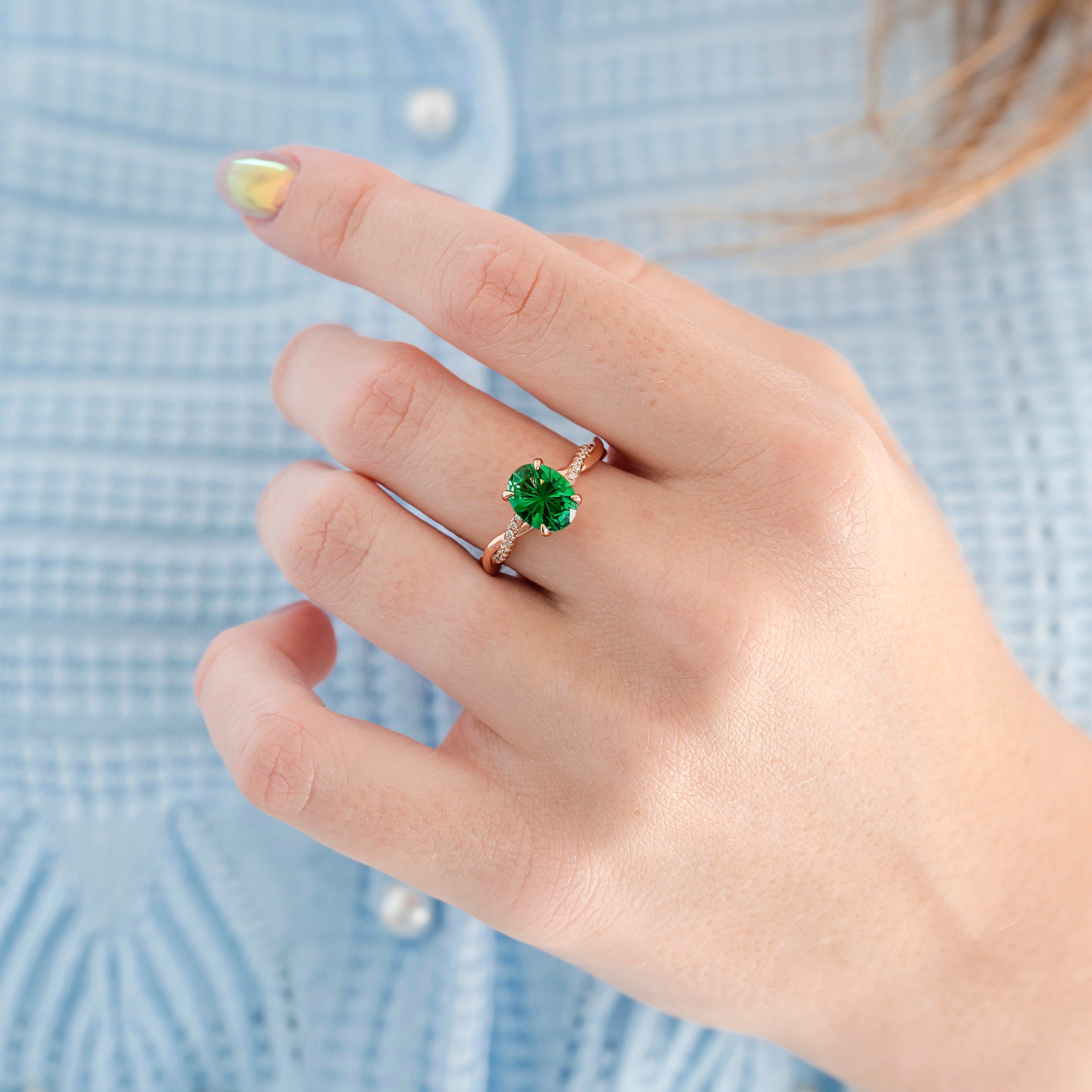 Sophia Fireworks Cut Emerald Ring in 14K Rose Gold Vermeil
