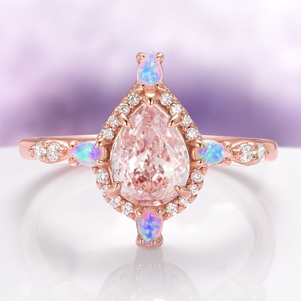 Teardrop Morganite & Fire Opal Ring in 14K Rose Gold Vermeil