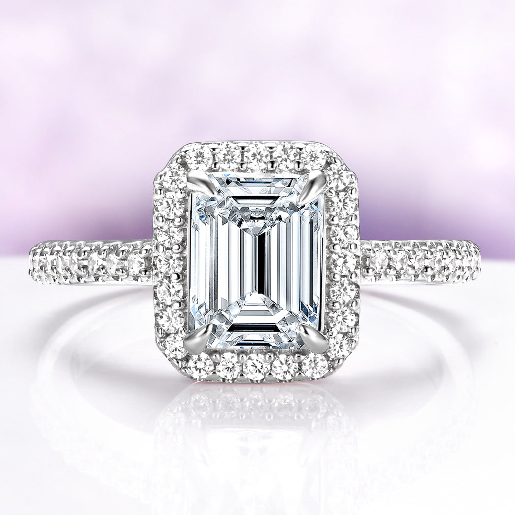Timeless elegance meets modern brilliance in this emerald cut white sapphire engagement ring. Designed with a radiant 1.7ct lab-grown white sapphire center stone, this piece captures the refined sophistication of a classic emerald cut while offering exceptional durability for everyday wear.