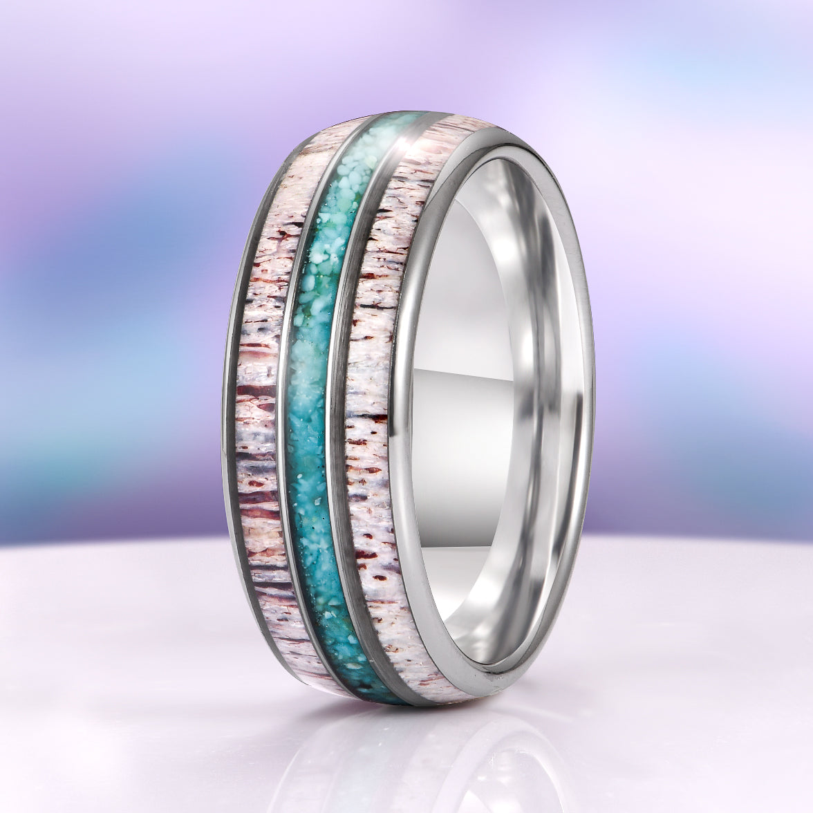Elk Antler & Turquoise Tungsten Carbide Wedding Band (8mm)