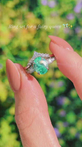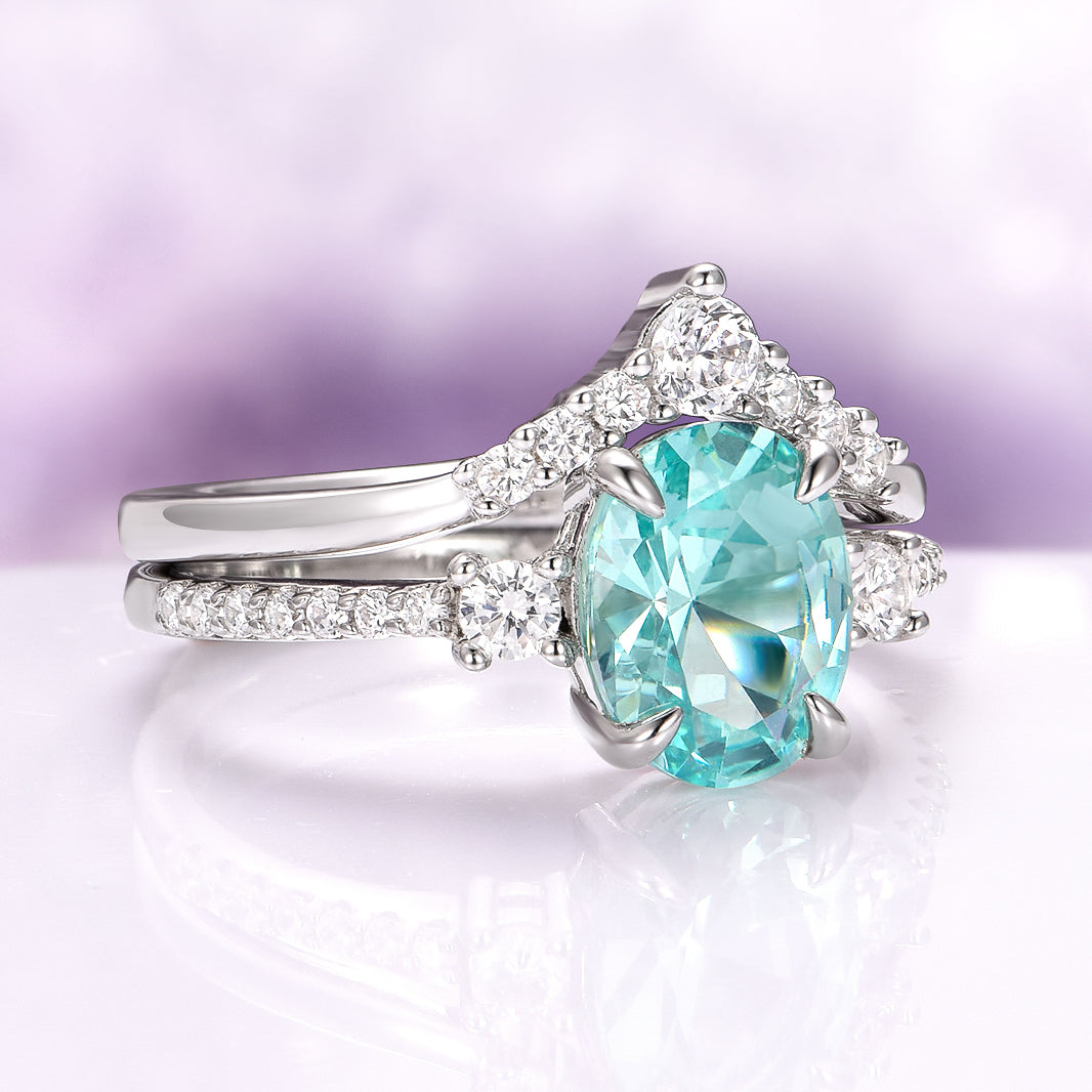 Bella Oval Cut Teal Sapphire Engagement Ring Set in 14K White Gold