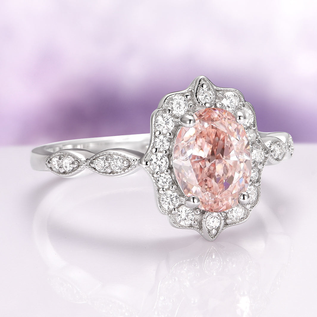 Timeless and romantic, this Vintage Morganite Ring in 14K solid white gold blends antique charm with soft elegance. An oval-cut peach-pink morganite sits at the center, radiating warmth and compassion. Framed by sparkling moissanite accent stones in a vintage-inspired setting, this ring captures the beauty of enduring love, perfect for romantic souls and lovers of delicate, nature-inspired design.