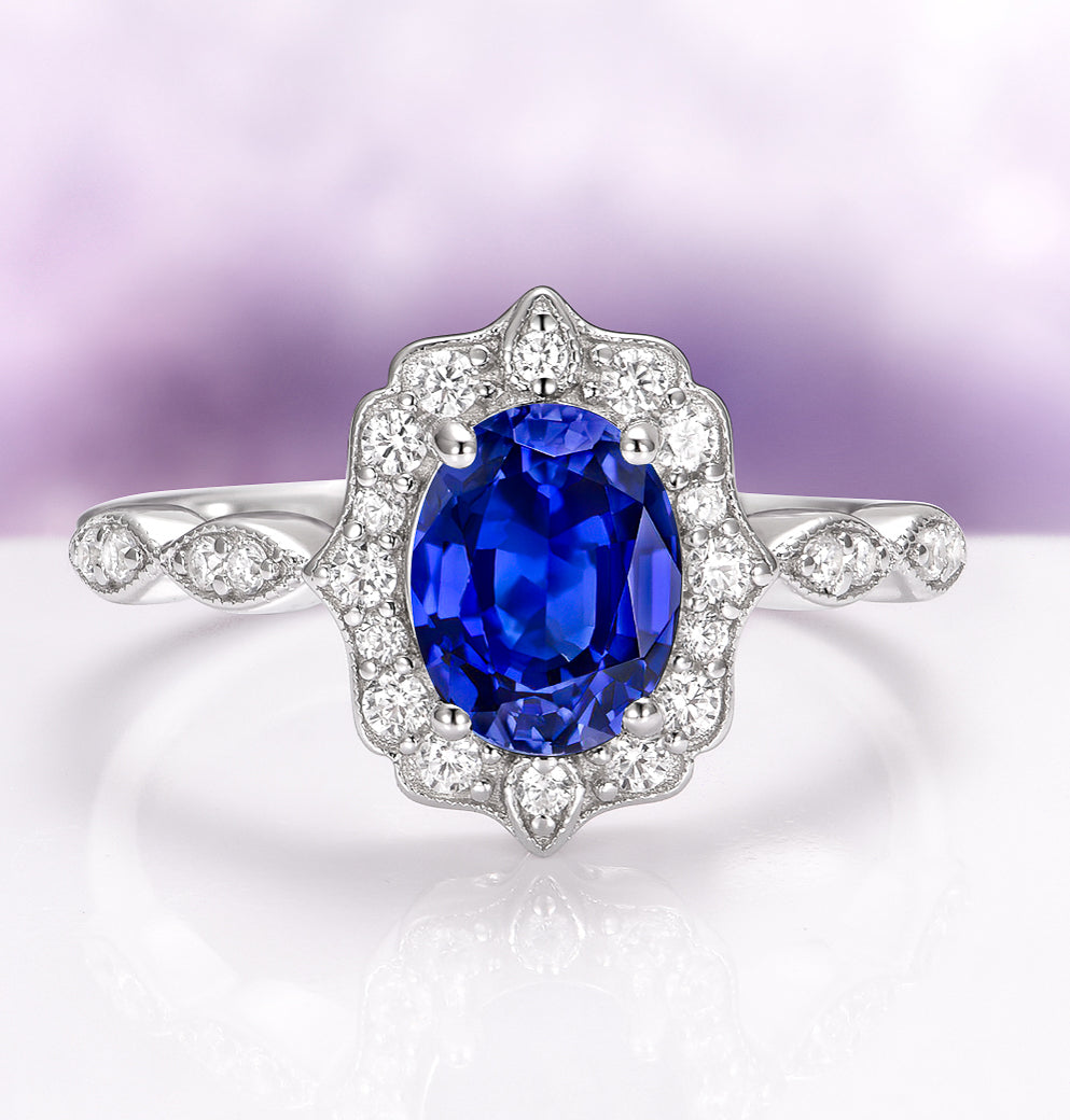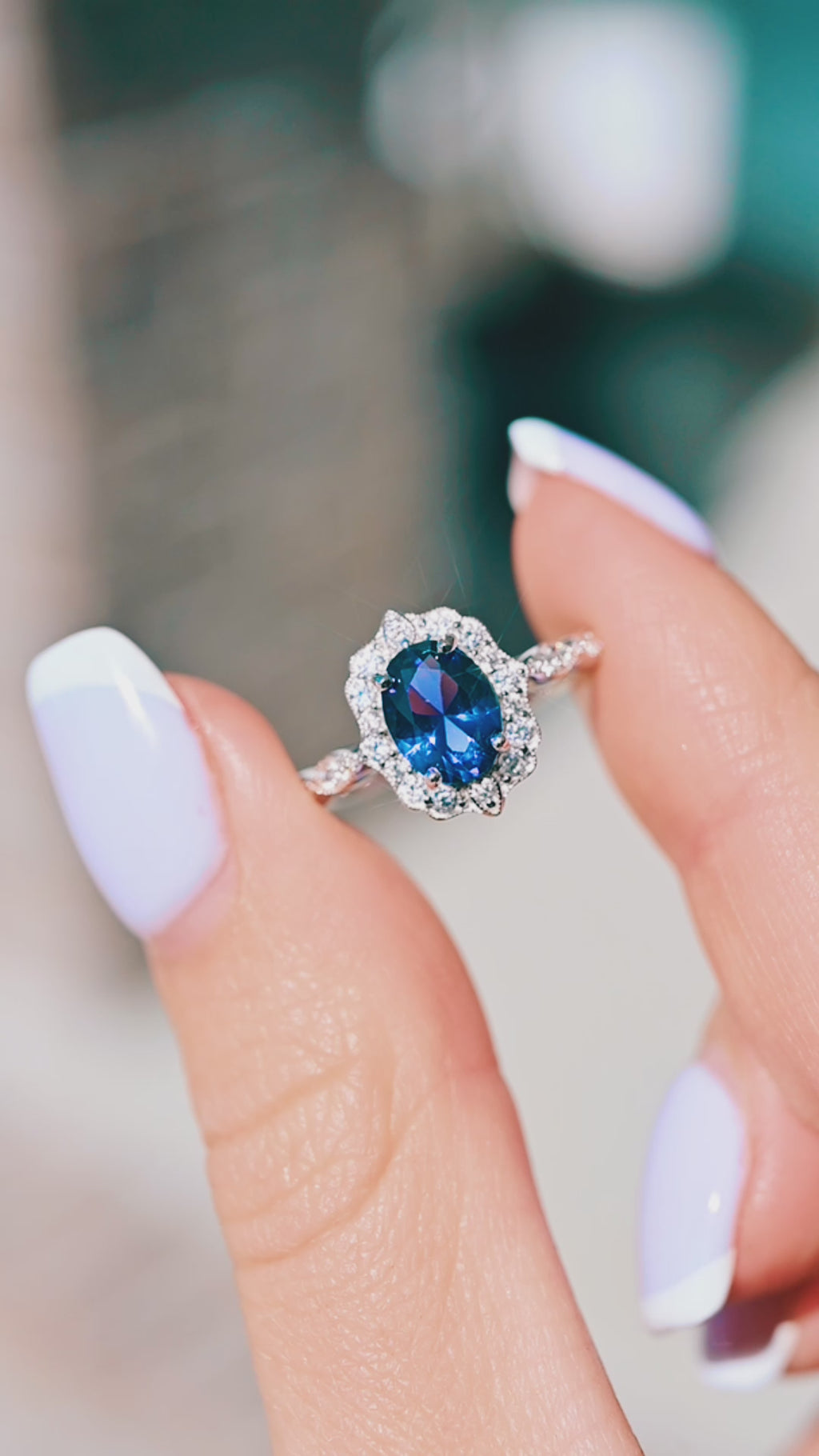 Introducing the Cordelia Oval Cut Blue Sapphire Engagement Ring, a vintage-inspired treasure that exudes sophistication, devotion, and timeless elegance. Handcrafted in solid 14K white gold, this exquisite piece features an oval-cut lab-grown blue sapphire, admired for its rich royal-blue hue that symbolizes loyalty, wisdom, and everlasting love. The polished white gold band is accented with your choice of moissanite or natural diamonds, enhancing the sapphire’s brilliance with a touch of radiant sparkle. Elegant and enduring, this design is a true heirloom made to celebrate a lifetime of love.