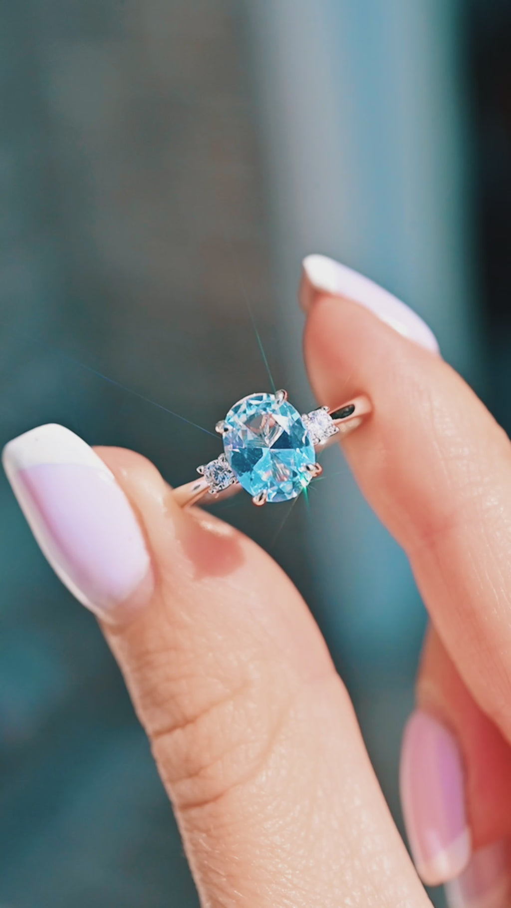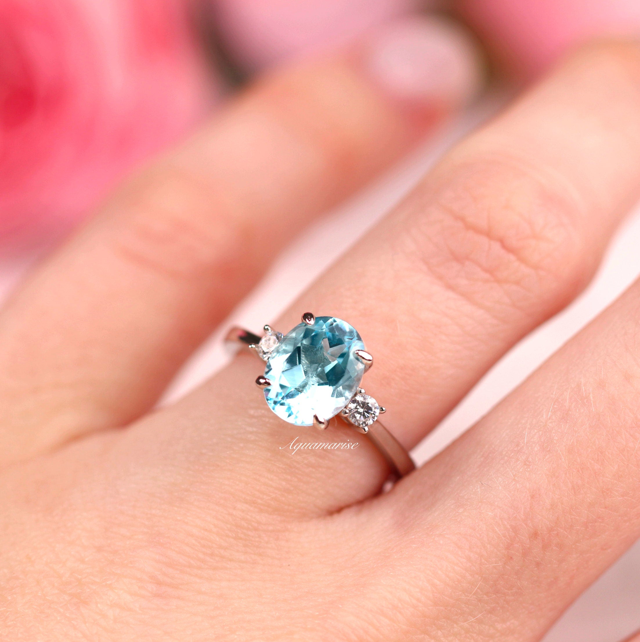 Everly Oval Cut Aquamarine Engagement Ring in 14K White Gold