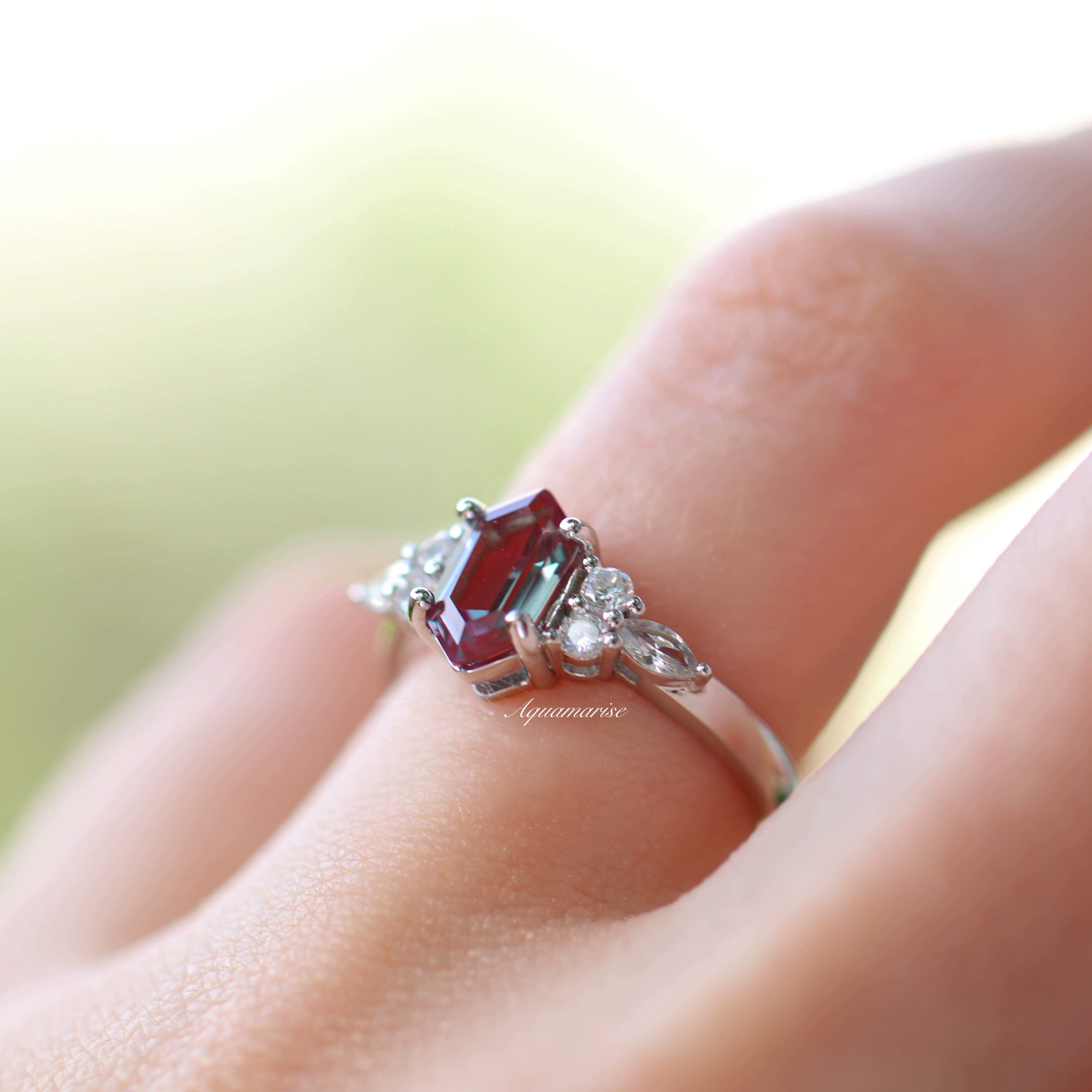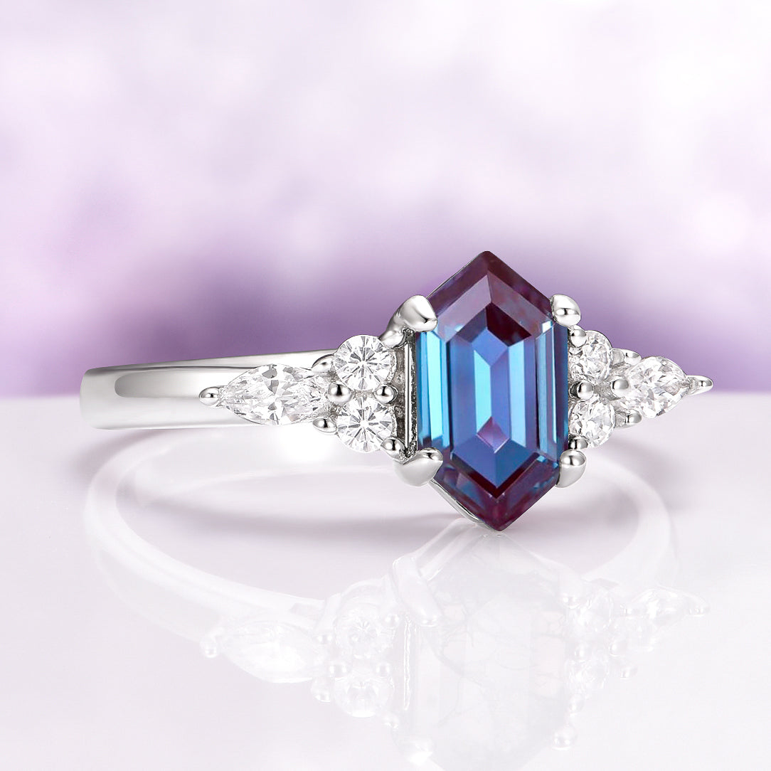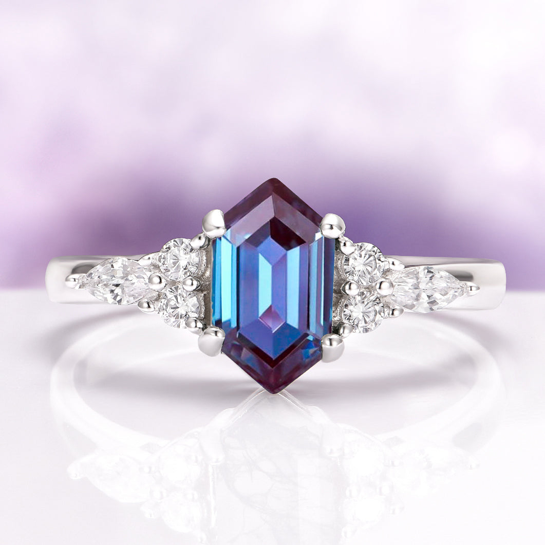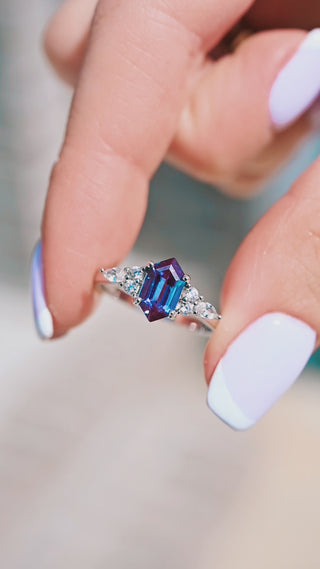 Sonnet Hexagon Cut Alexandrite Engagement Ring in 14K White Gold