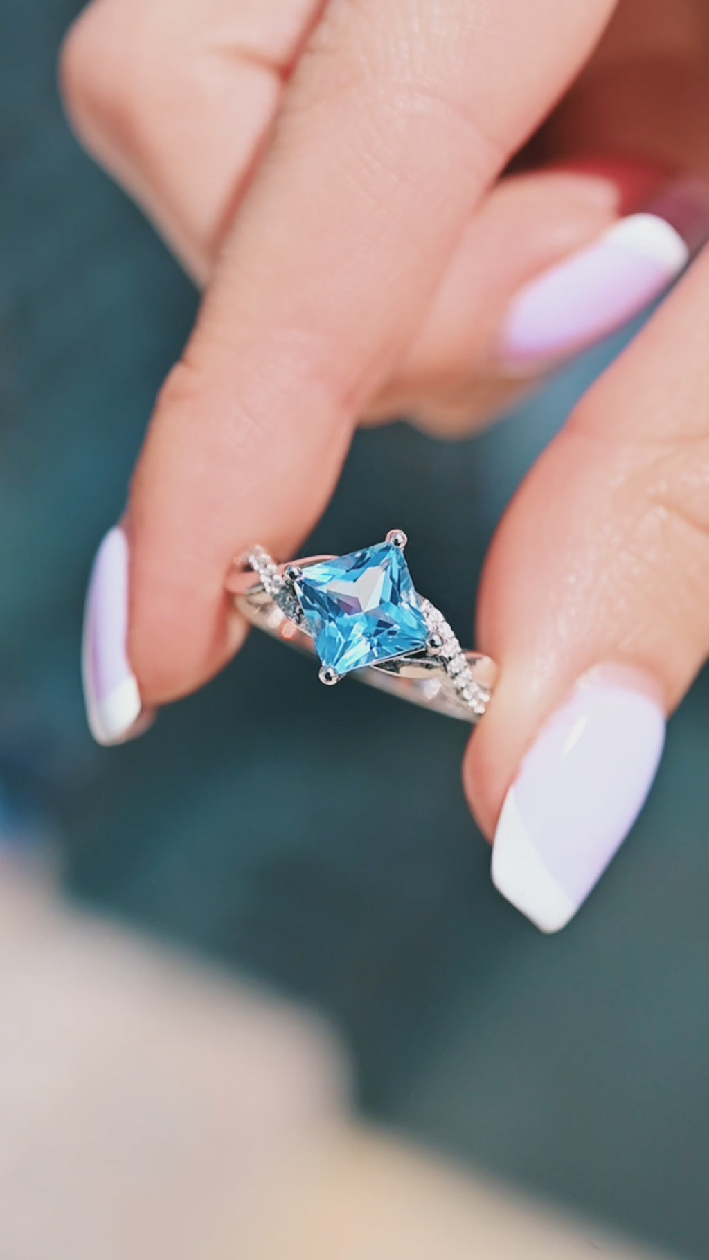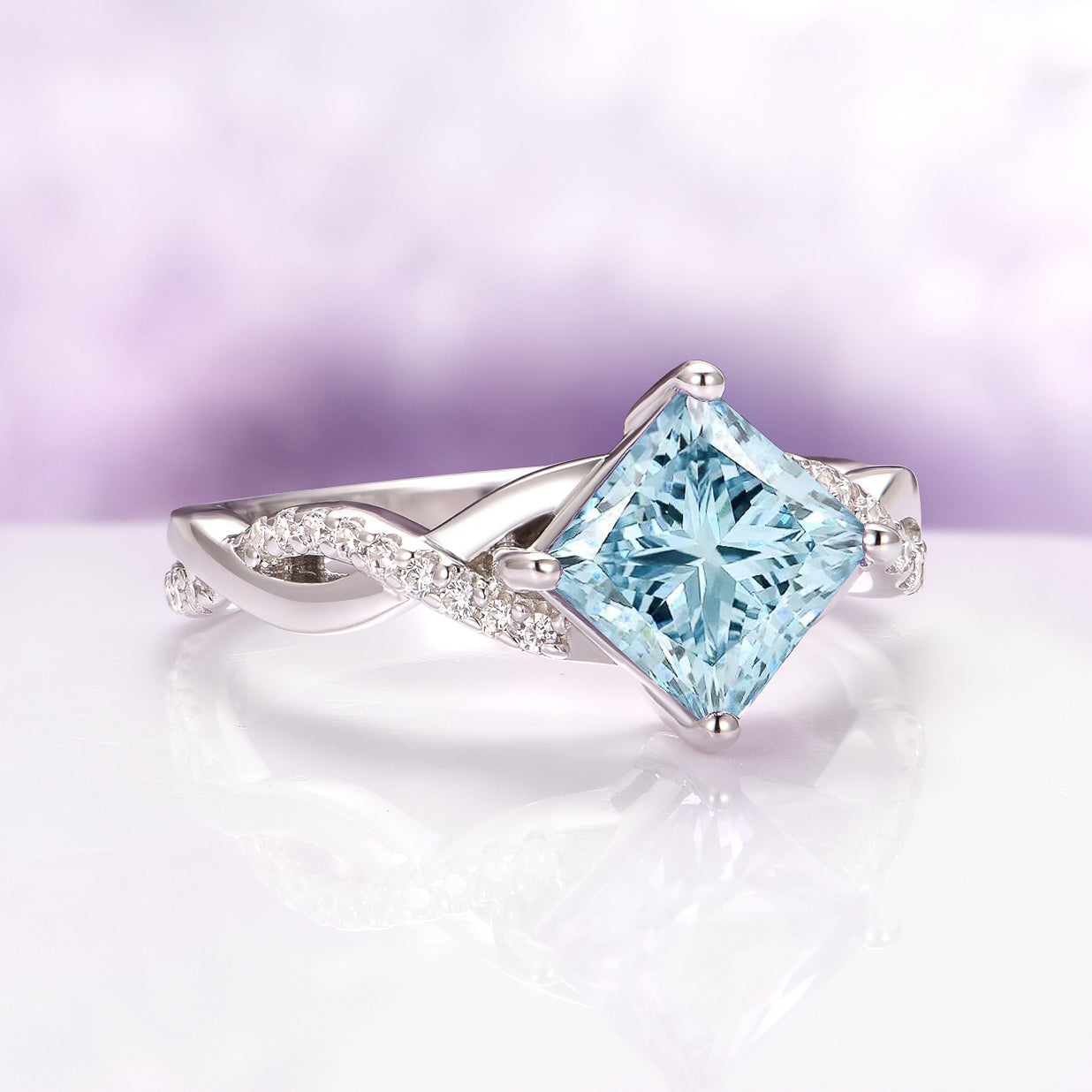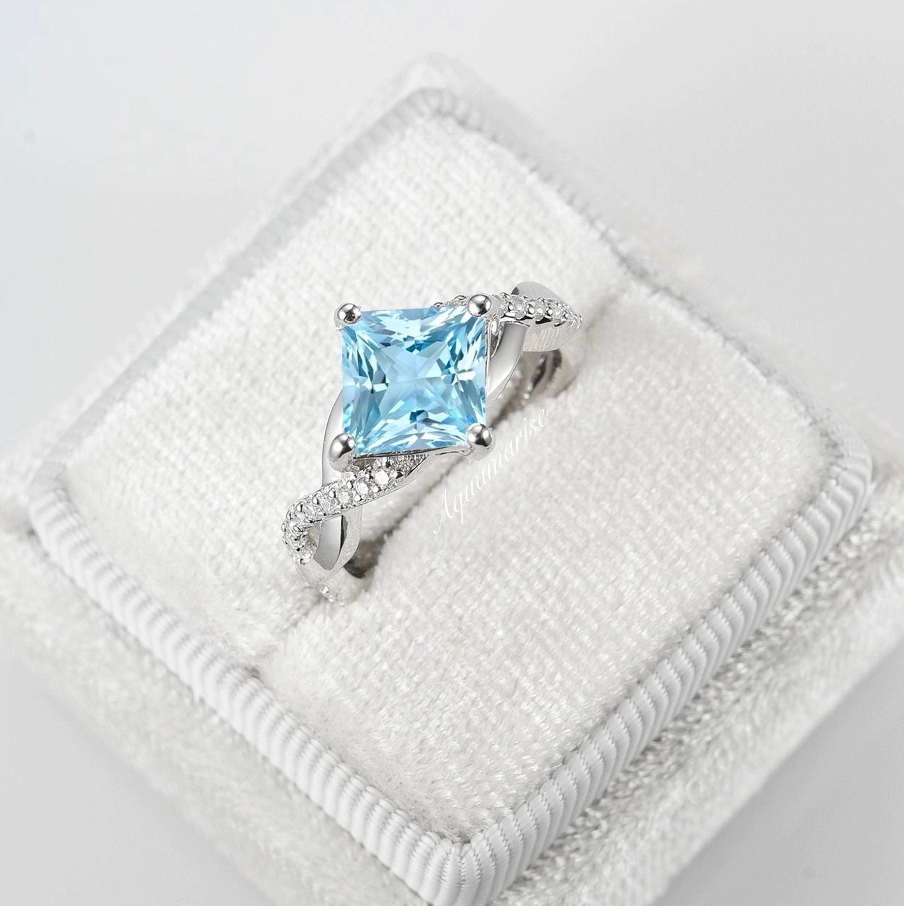 Sophia Twisted Vine Aquamarine Engagement Ring in 14K White Gold