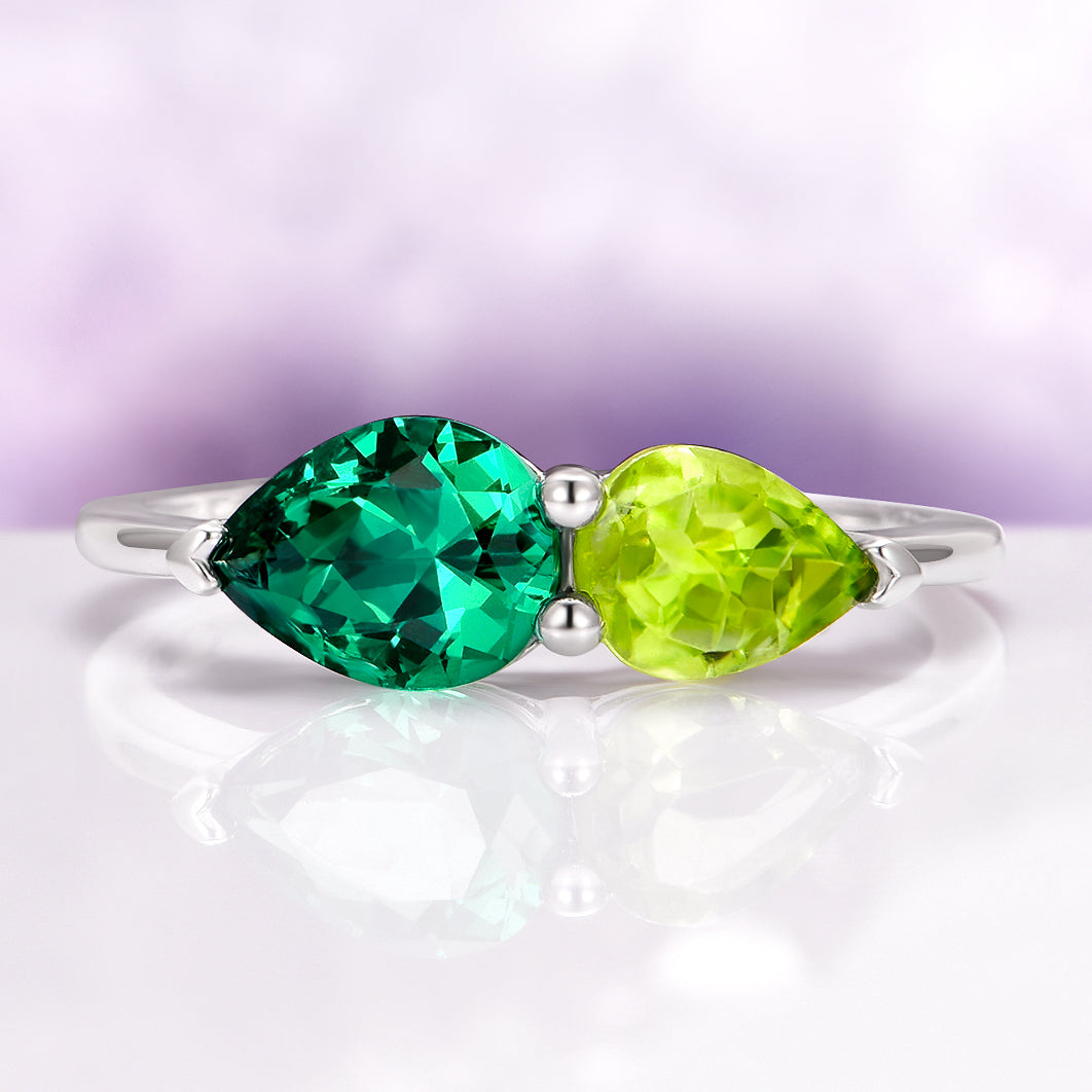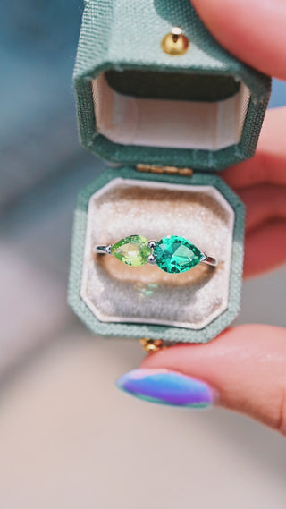 The Toi Et Moi Pear Cut Peridot & Emerald Ring in 14K Solid White Gold is a vibrant and symbolic design that celebrates harmony, duality, and connection. Inspired by the French phrase “Toi et Moi,” meaning “you and me,” this two-stone ring represents two distinct souls coming together as one. Featuring a vivid pear-cut peridot and a rich pear-cut emerald, this piece blends warm and cool tones in a graceful, modern silhouette. Perfect for engagements, anniversaries, or anyone drawn to meaningful, colorful fine jewelry.
