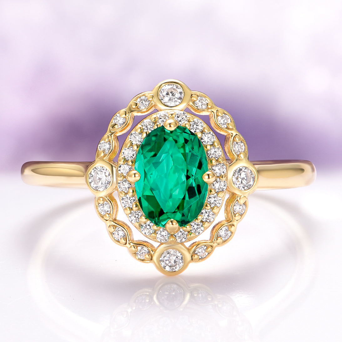 This romantic and refined Valentina Art Deco Emerald Ring in 14K Solid Yellow Gold is a vintage-inspired design that blends elegance with timeless artistry. Featuring a vivid oval emerald, the rich green hue is framed by intricate milgrain details and sparkling accents, capturing the essence of early 20th-century glamour. The warmth of solid yellow gold enhances the classic Art Deco geometry, making it a beautiful choice for engagements, anniversaries, or heirloom-worthy gifts.
