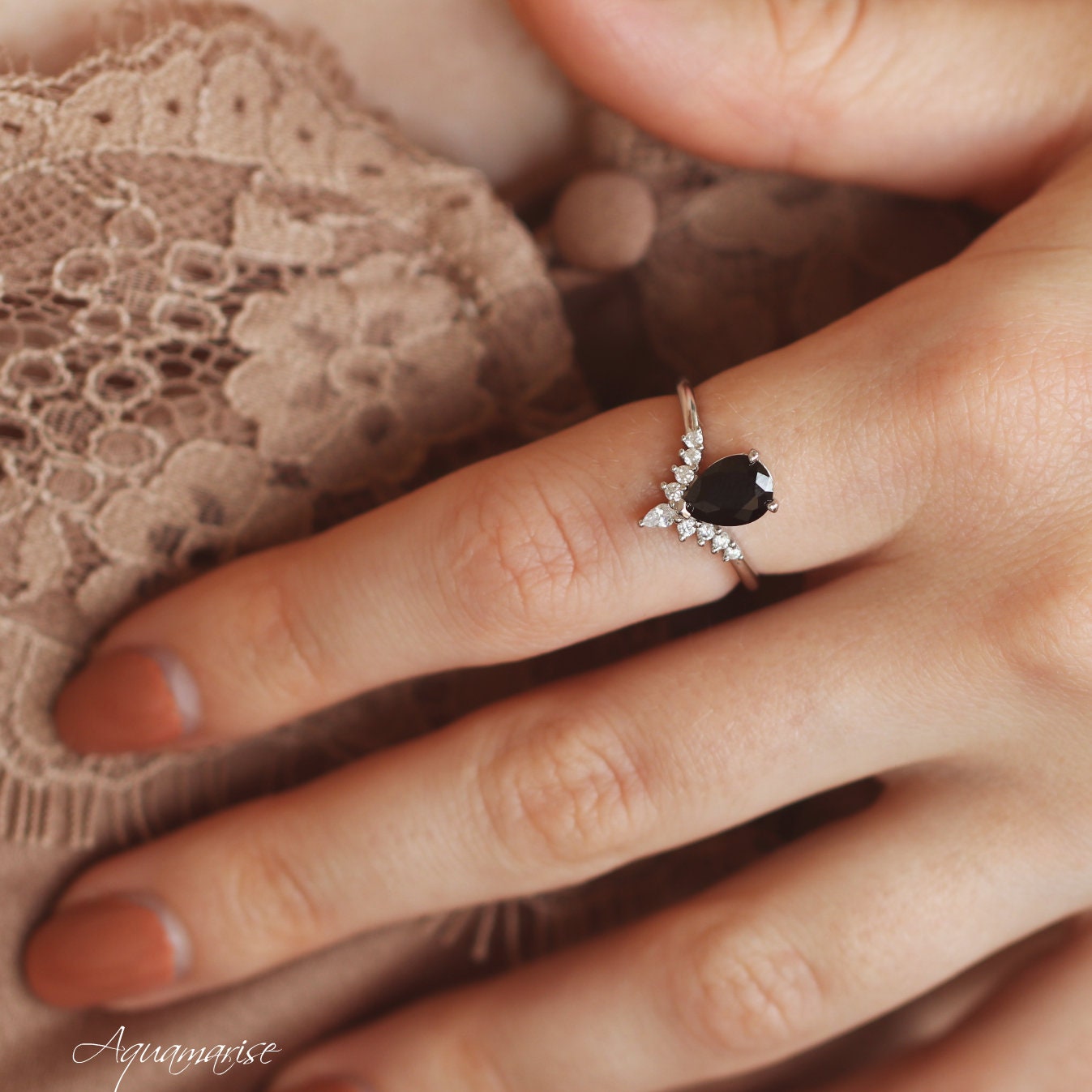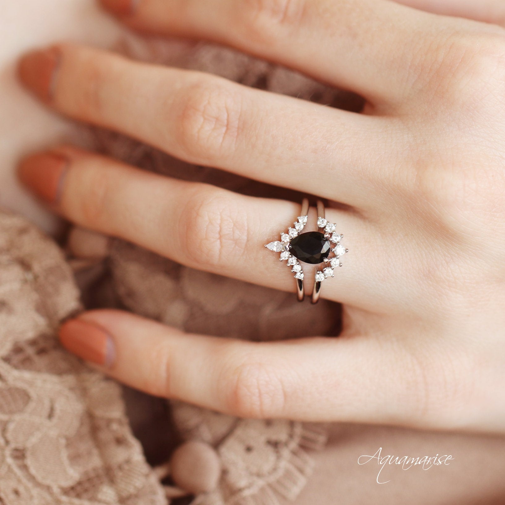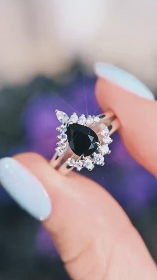This stunning Black Onyx Ring Set features a striking teardrop-cut natural black onyx center stone, set in solid 925 sterling silver with a protective rhodium finish. Elegant, bold, and effortlessly timeless, this set is the perfect choice for those who desire a non-traditional engagement ring or a meaningful promise ring with a touch of mystique.