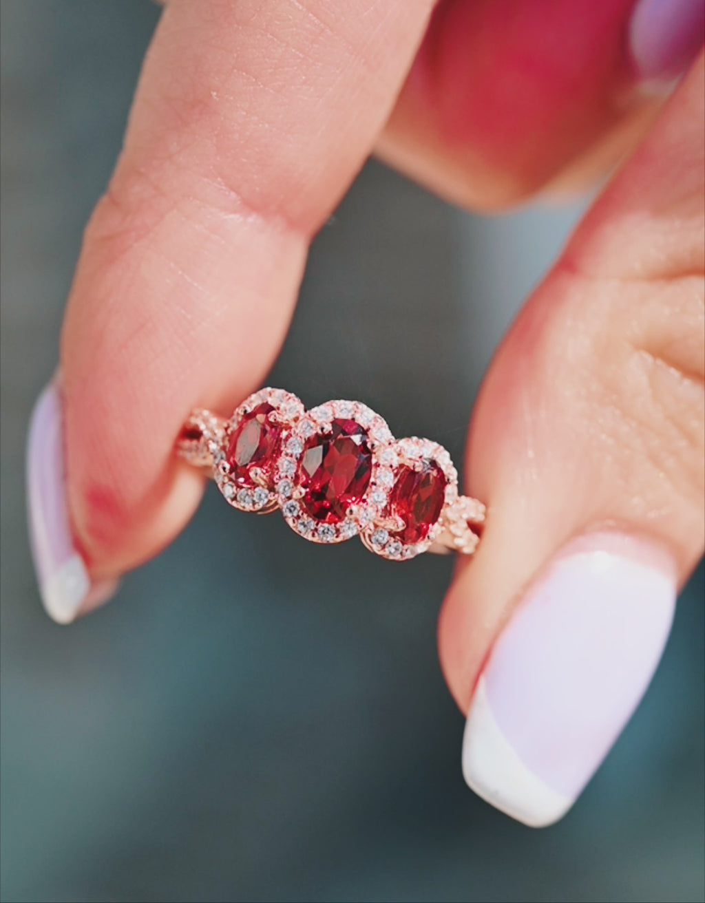 Trio Garnet Ring- 14K Rose Gold Vermeil