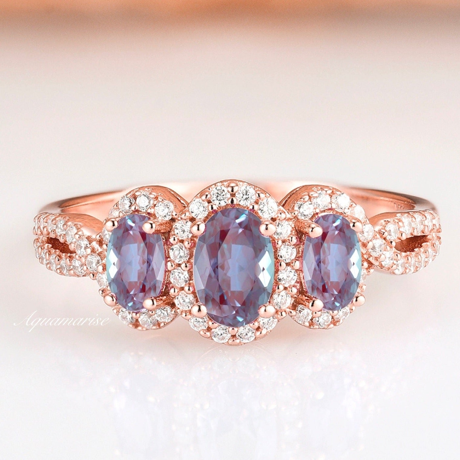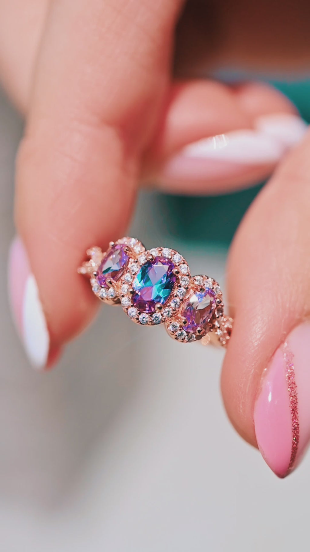 Three Stone Alexandrite Ring in 14K Rose Gold Vermeil