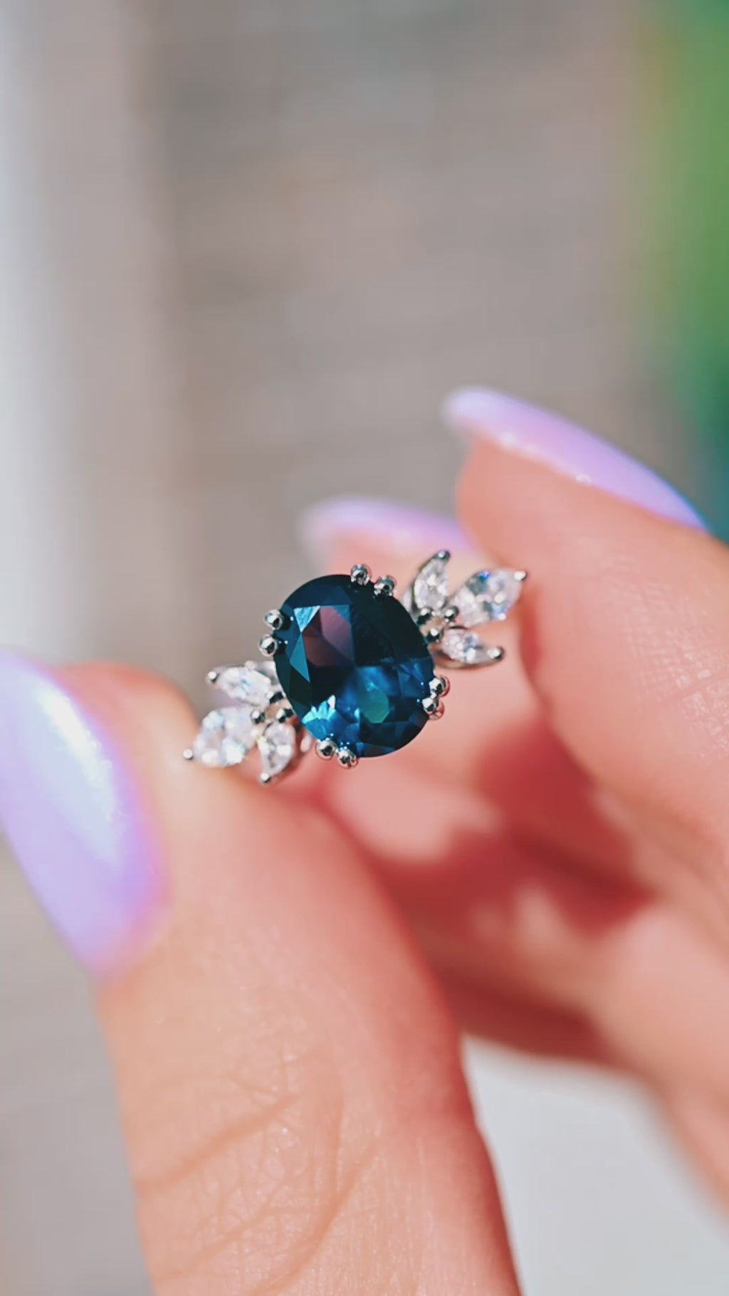 Eva Natural London Blue Topaz Engagement Ring in 14K White Gold