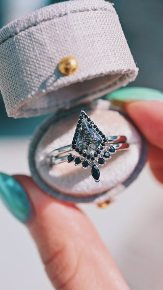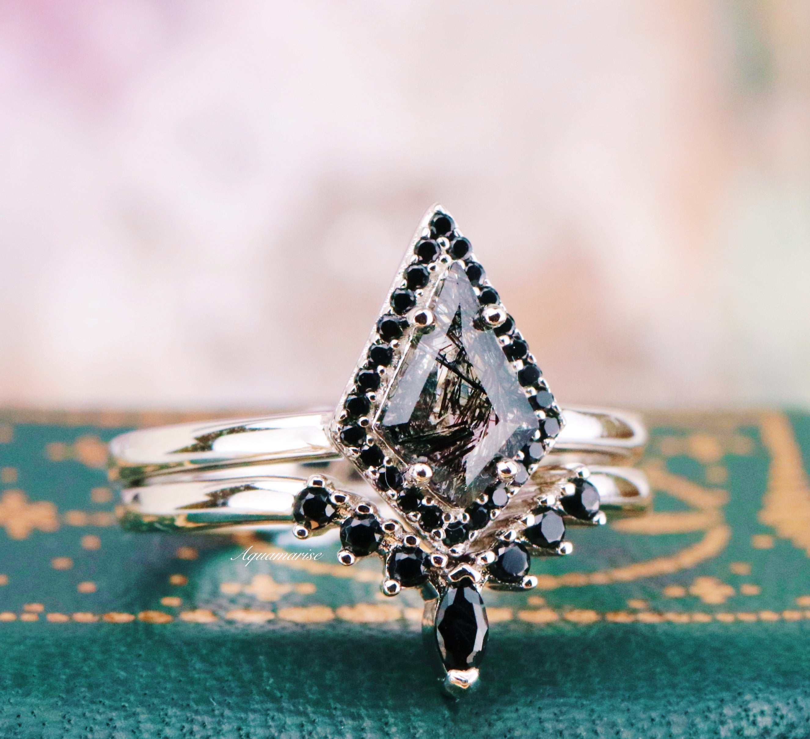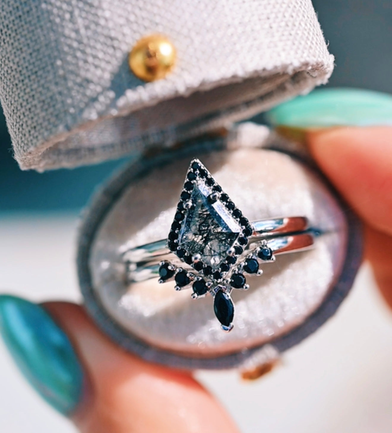 Rutilated Quartz & Black Onyx Engagement Ring Set in 14K White Gold