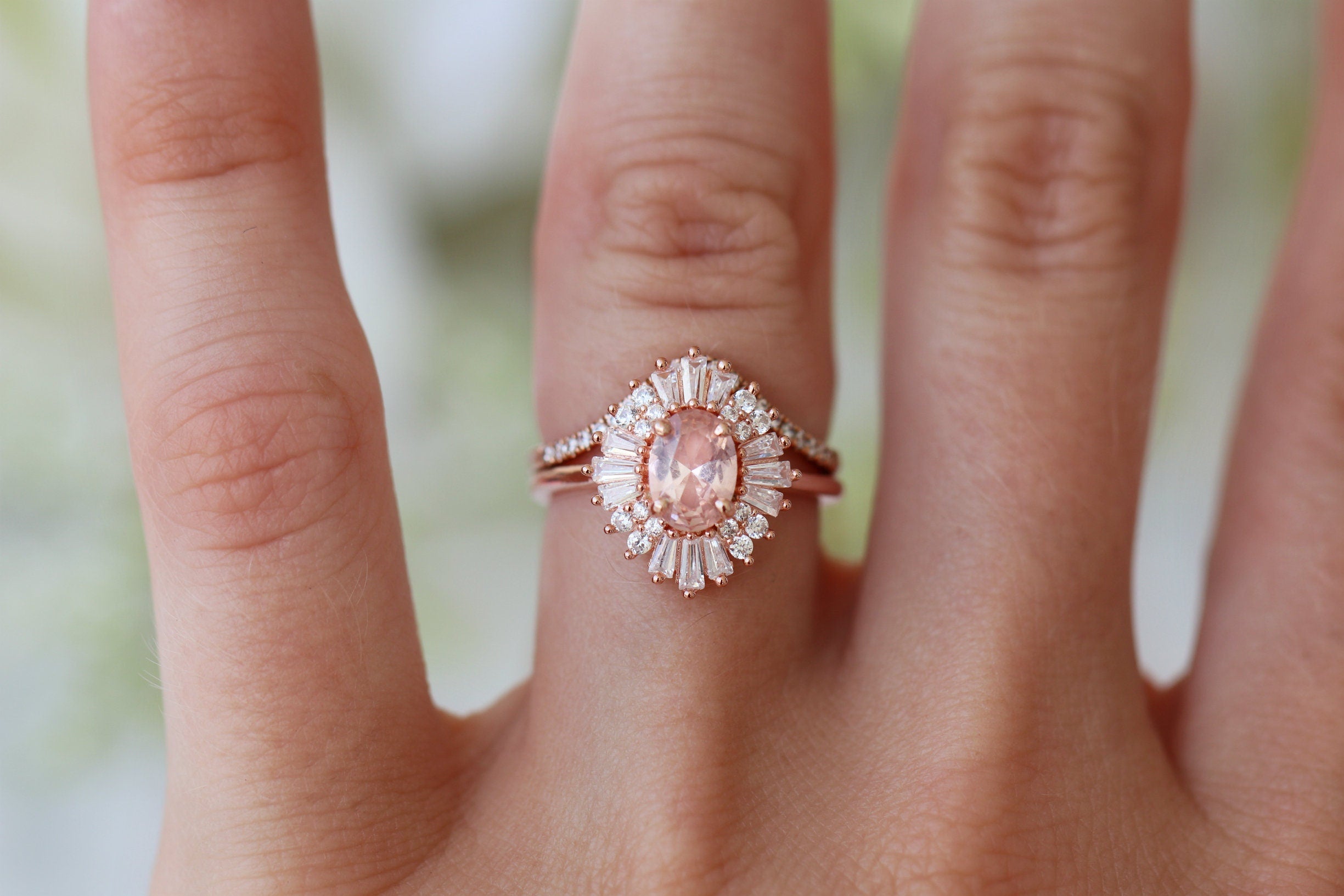 ►Please note that each center stone is natural, so variations in color are to be expected, ranging from light pink to peachy pink to soft peach. Each gem is truly one-of-a-kind, with its own natural beauty and character. If you have a color preference, feel free to leave a note at checkout and we’ll do our best to accommodate it.