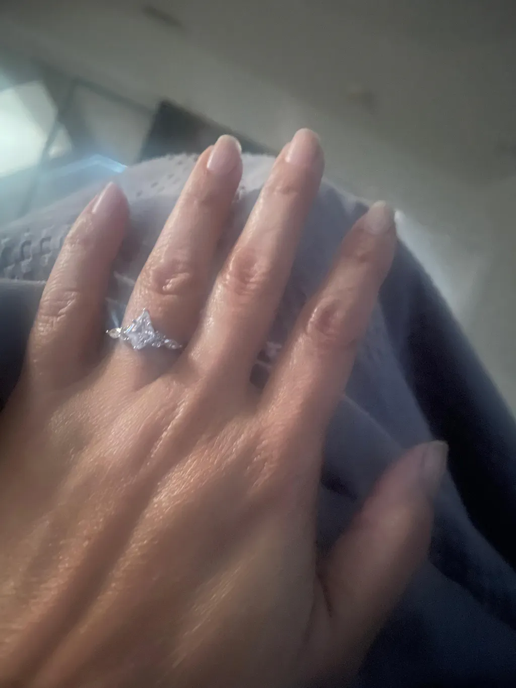 At the center of her ring is a stunning kite-cut stone, known for its sharp geometry and modern aesthetic.