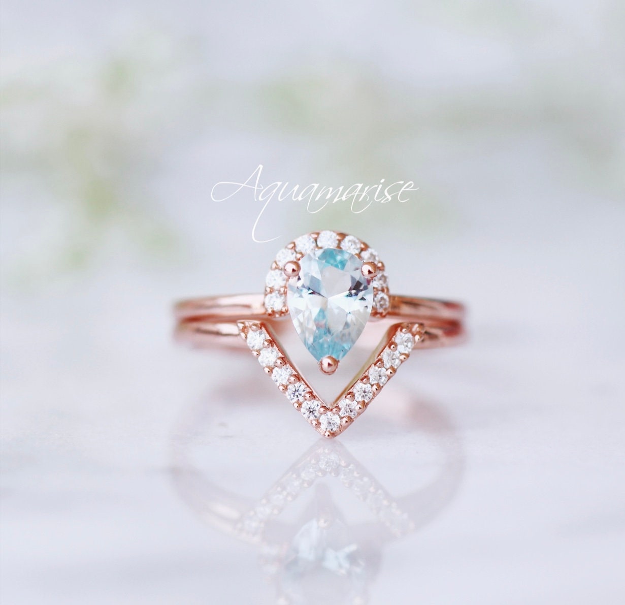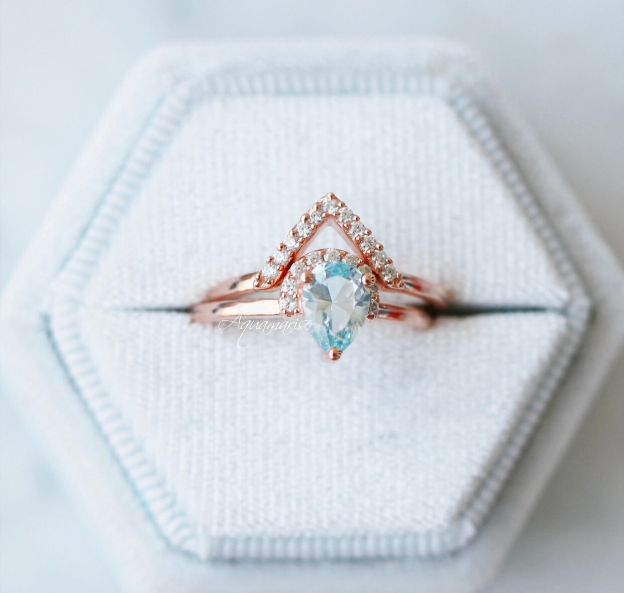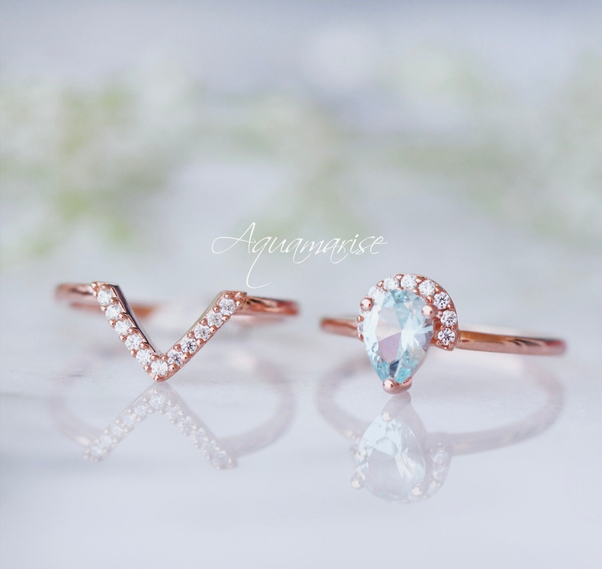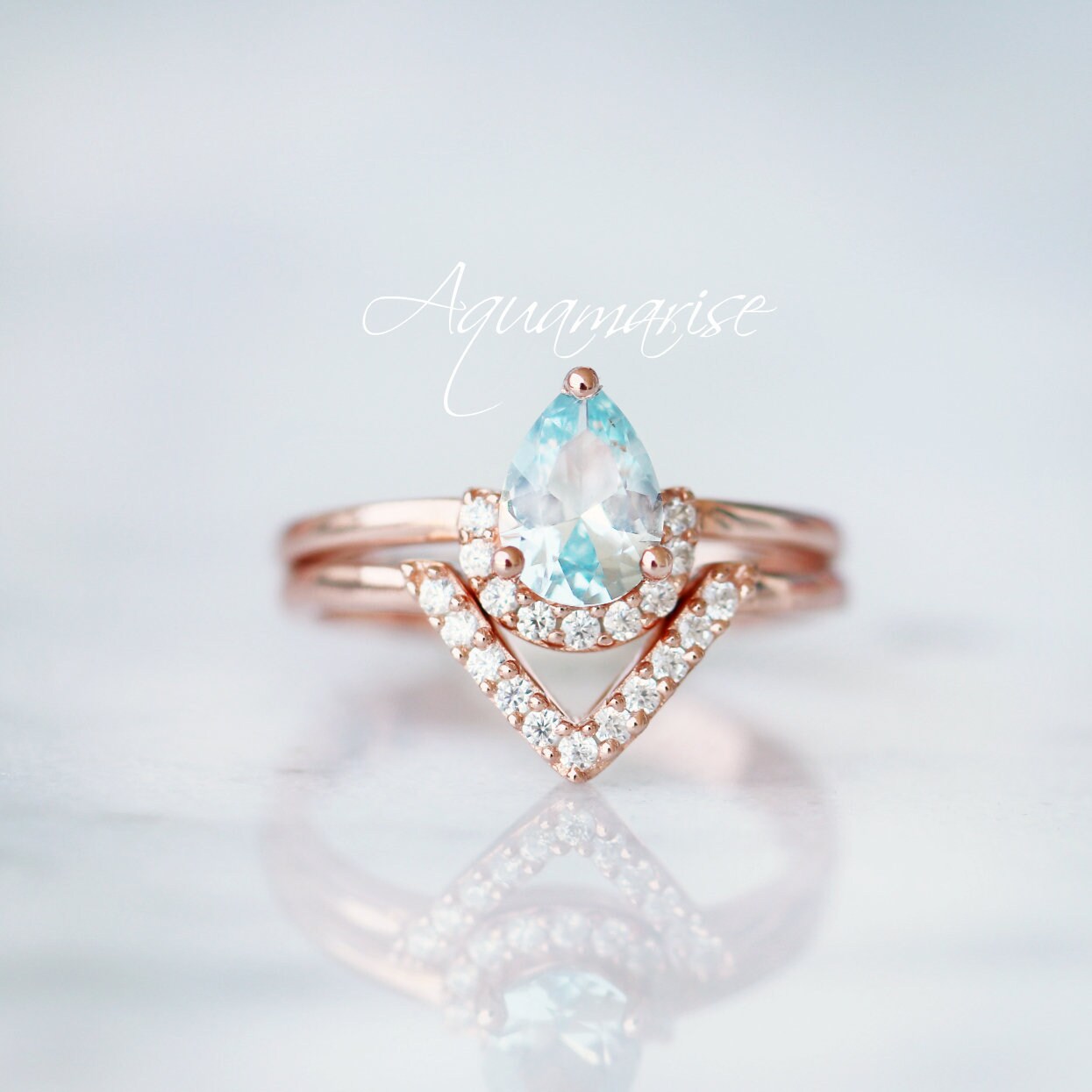Aria Aquamarine Ring Set- 14K Rose Gold Vermeil