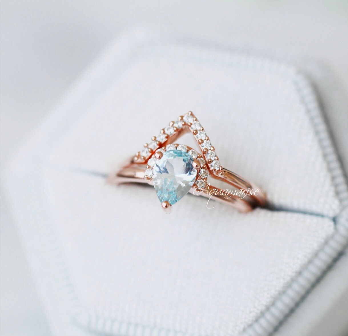OMG this ring is everything and more! I have been looking for the perfect aquamarine/rose gold ring and it literally met beyond my expectations!!!