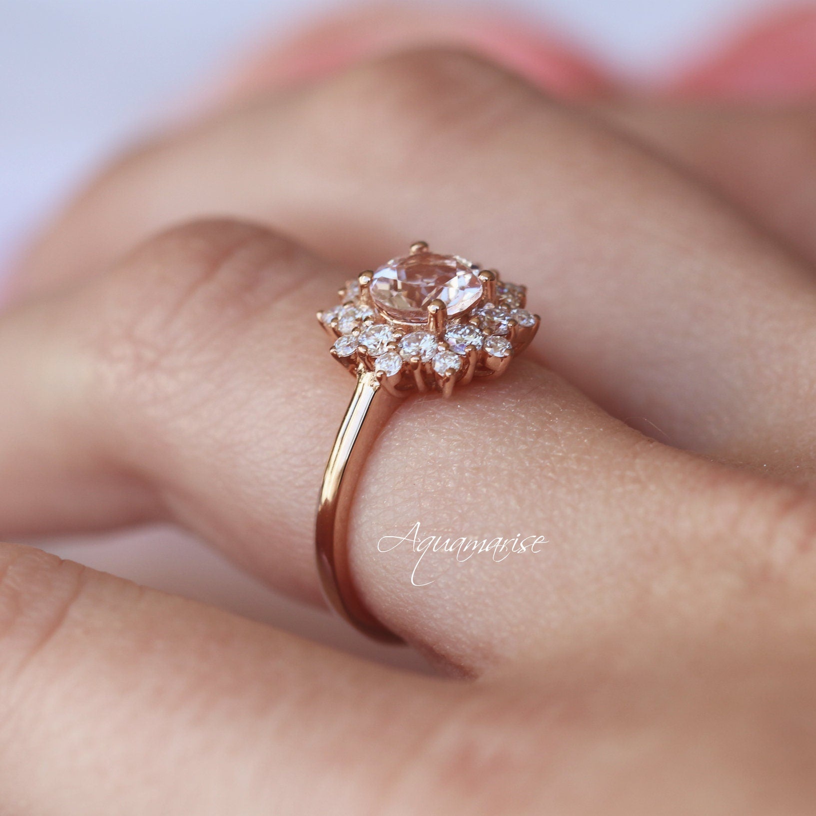 Graceful, feminine, and timeless — the Avery Snowflake Morganite Ring captures the beauty of winter’s first snowflake in a delicate halo design. Featuring a round-cut peachy-pink simulated Morganite, this dainty ring shimmers with soft, romantic hues that evoke warmth and love.