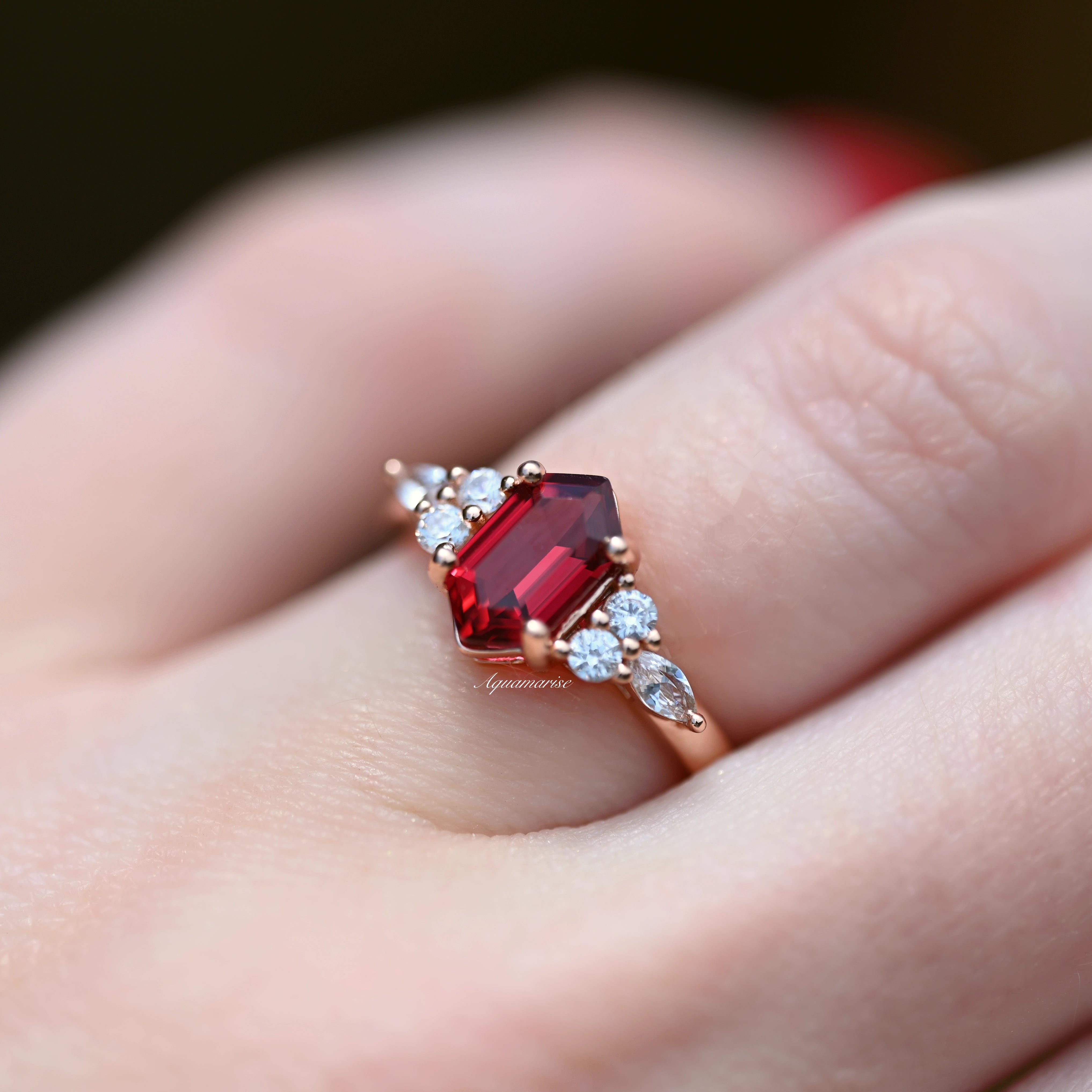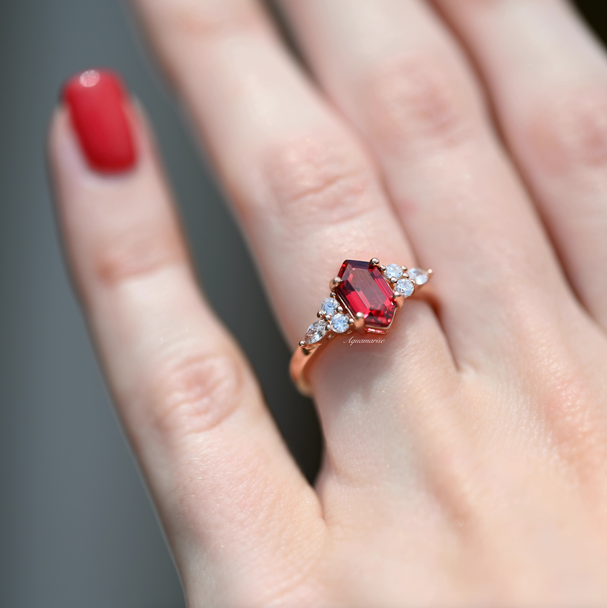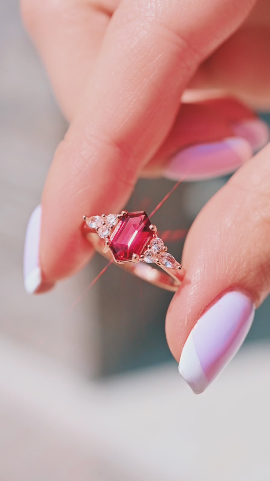 Gorgeous vintage inspired ruby ring is made of 14K rose gold vermeil over 925 sterling silver, making a simple but elegant statement piece. This ring is perfect to wear as engagement ring, promise ring, birthstone ring, or statement ring. Lightweight and minimalist.