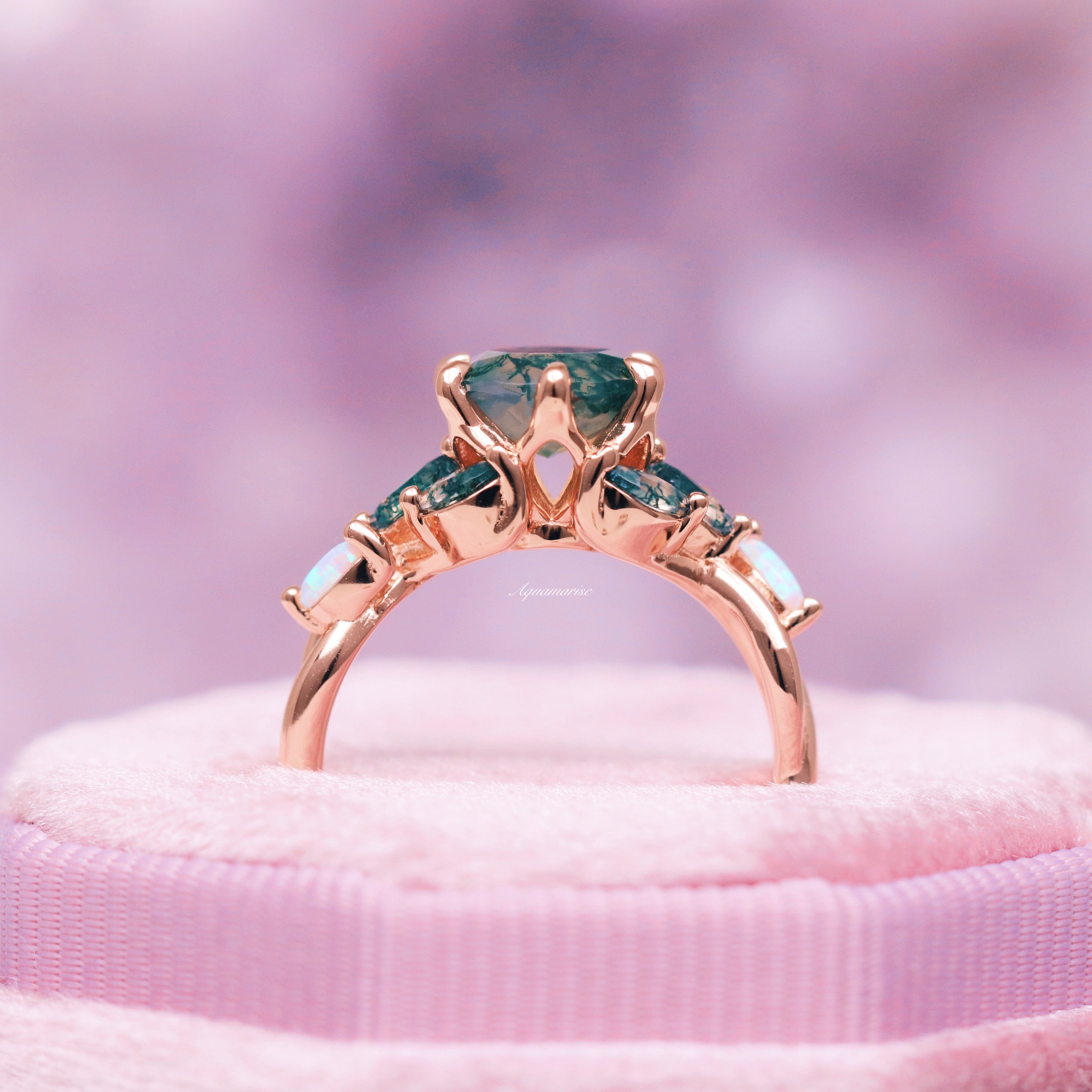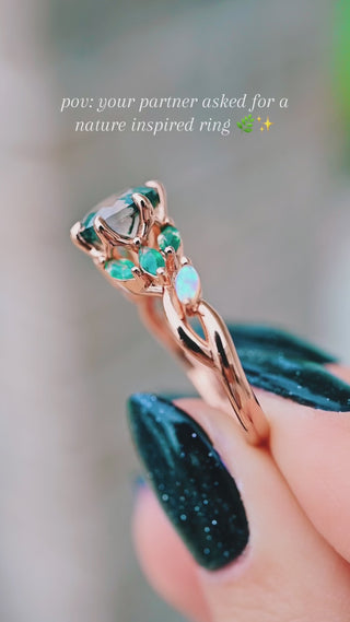 Enchanted Garden Green Moss Agate & Fire Opal Ring- 14K Rose Gold Vermeil