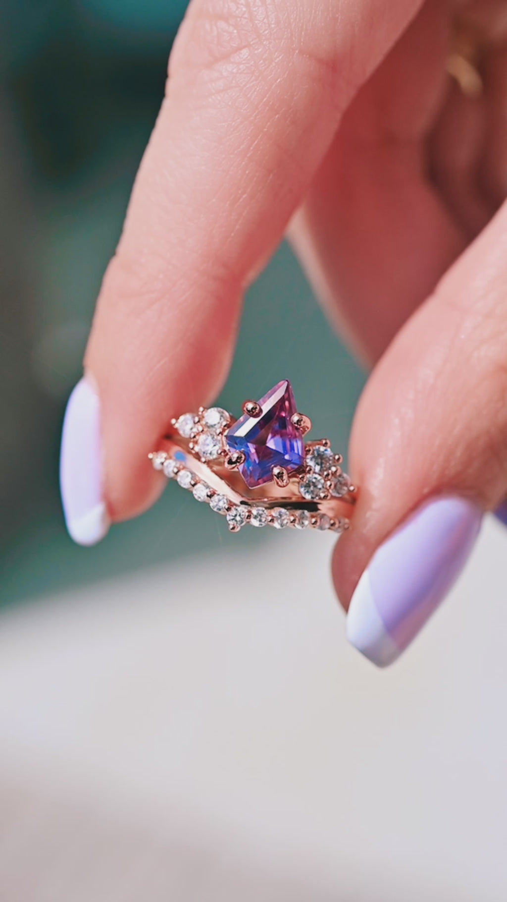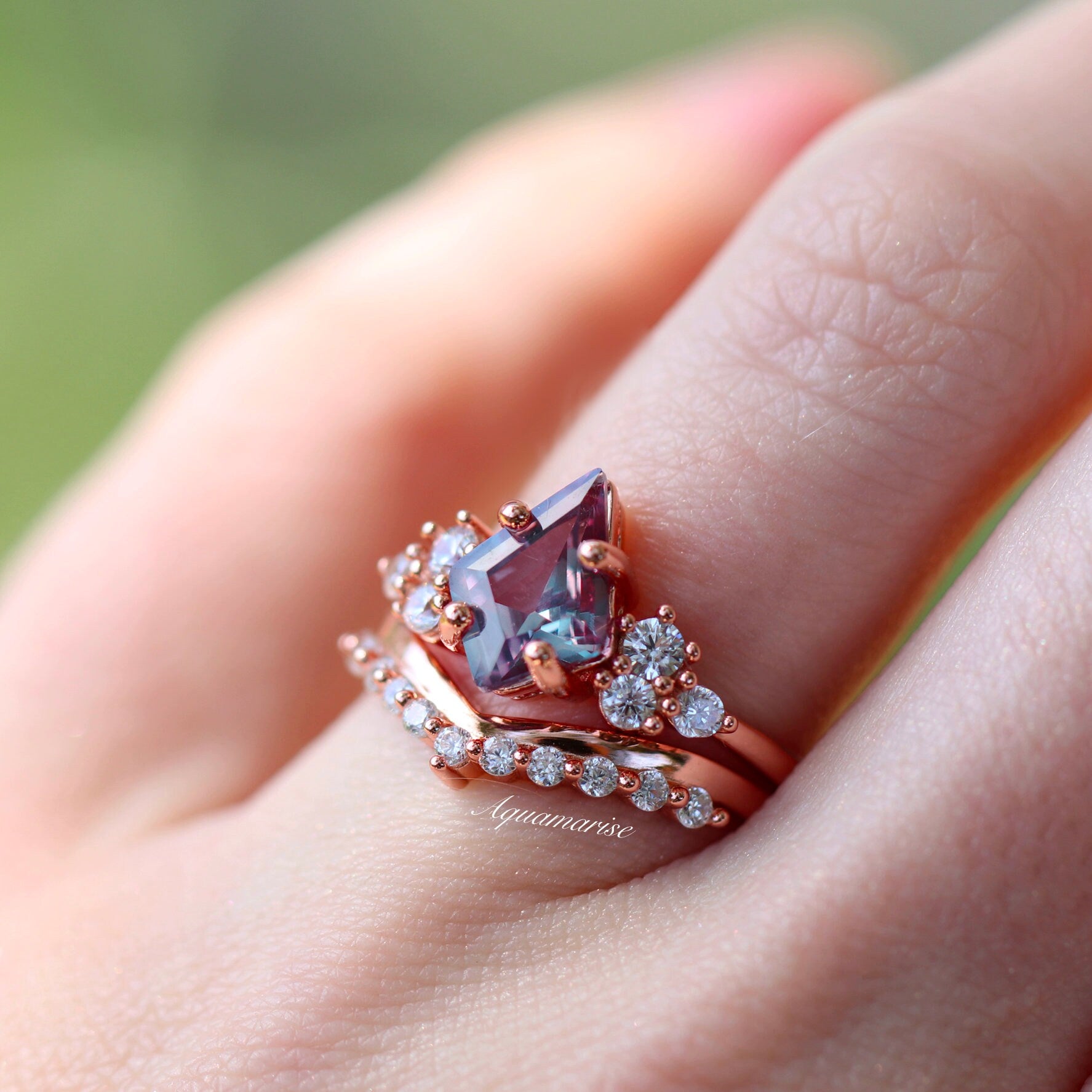 Skylar Kite Cut Alexandrite Engagement Ring Set in 14K Rose Gold Vermeil