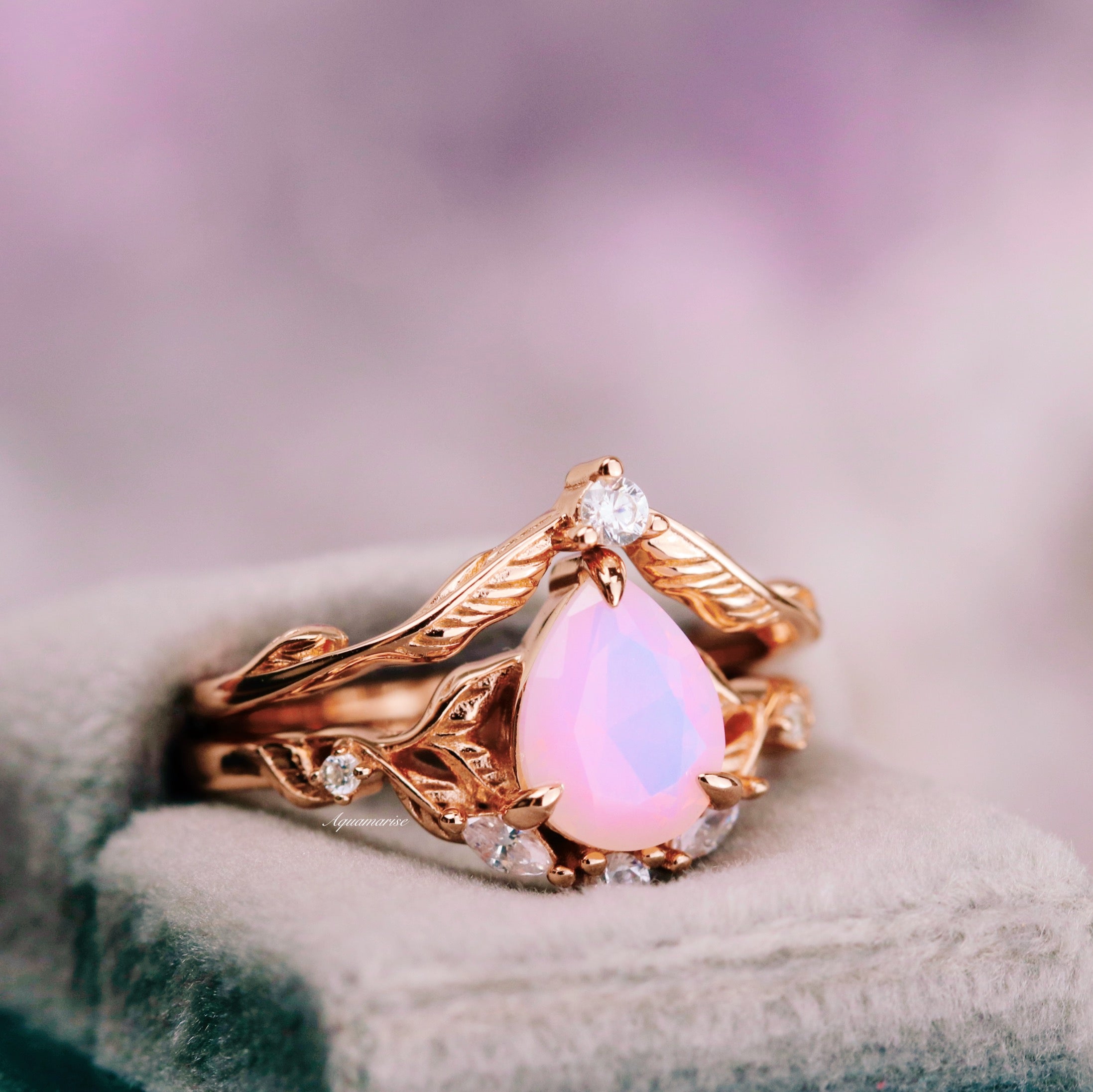 Airee Opalescent Pink Sapphire Engagement Ring Set- 14K Rose Gold Vermeil