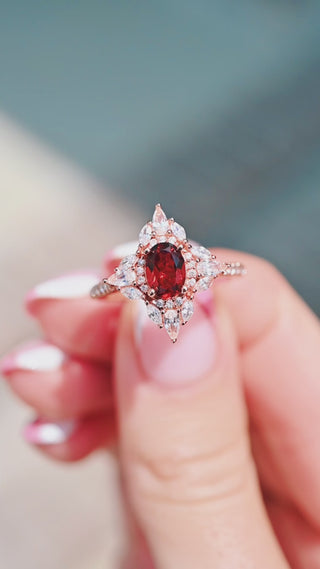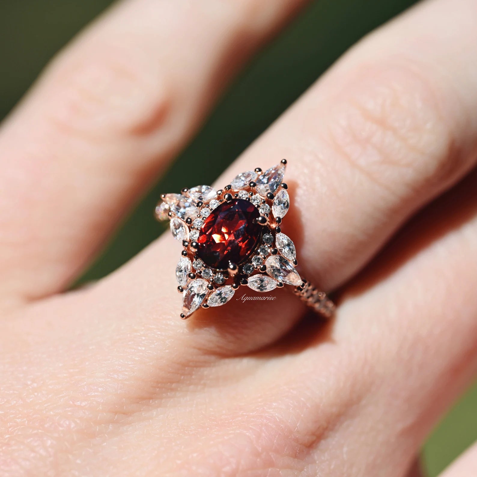 Stella Natural Red Garnet Ring- 14K Rose Gold Vermeil