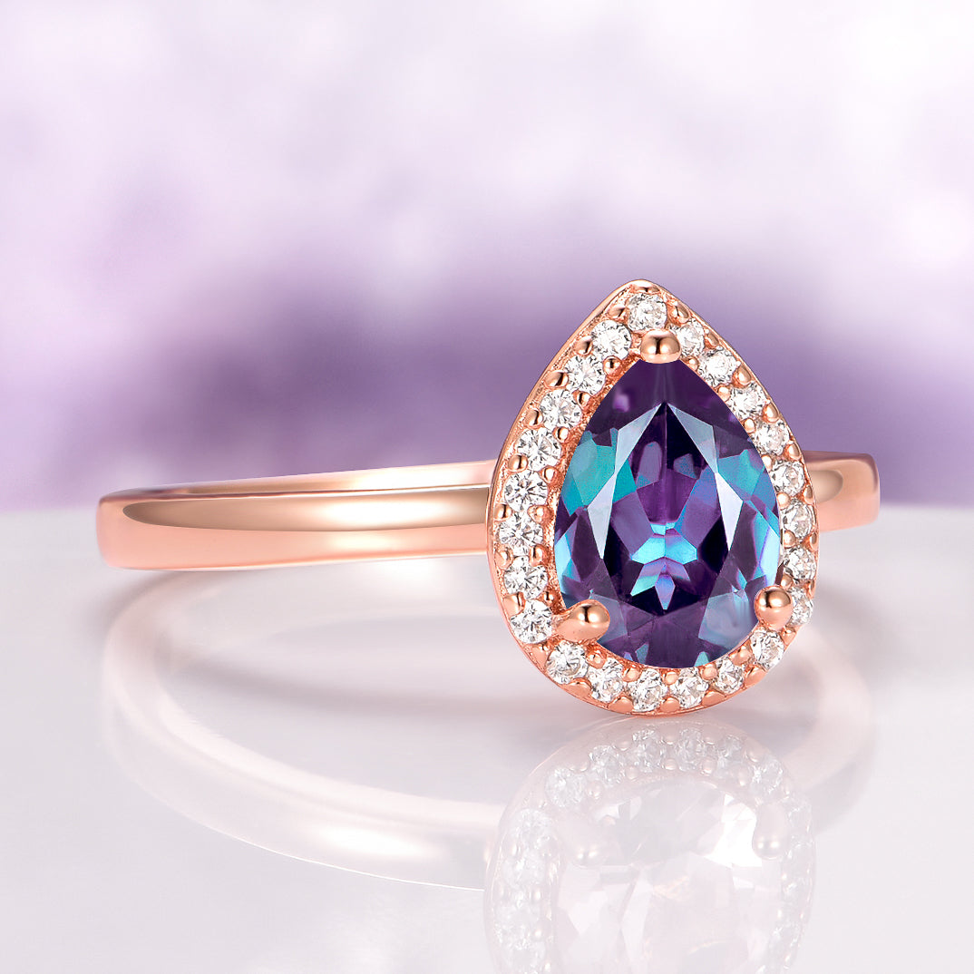Teardrop Alexandrite Ring in 14K Rose Gold Vermeil