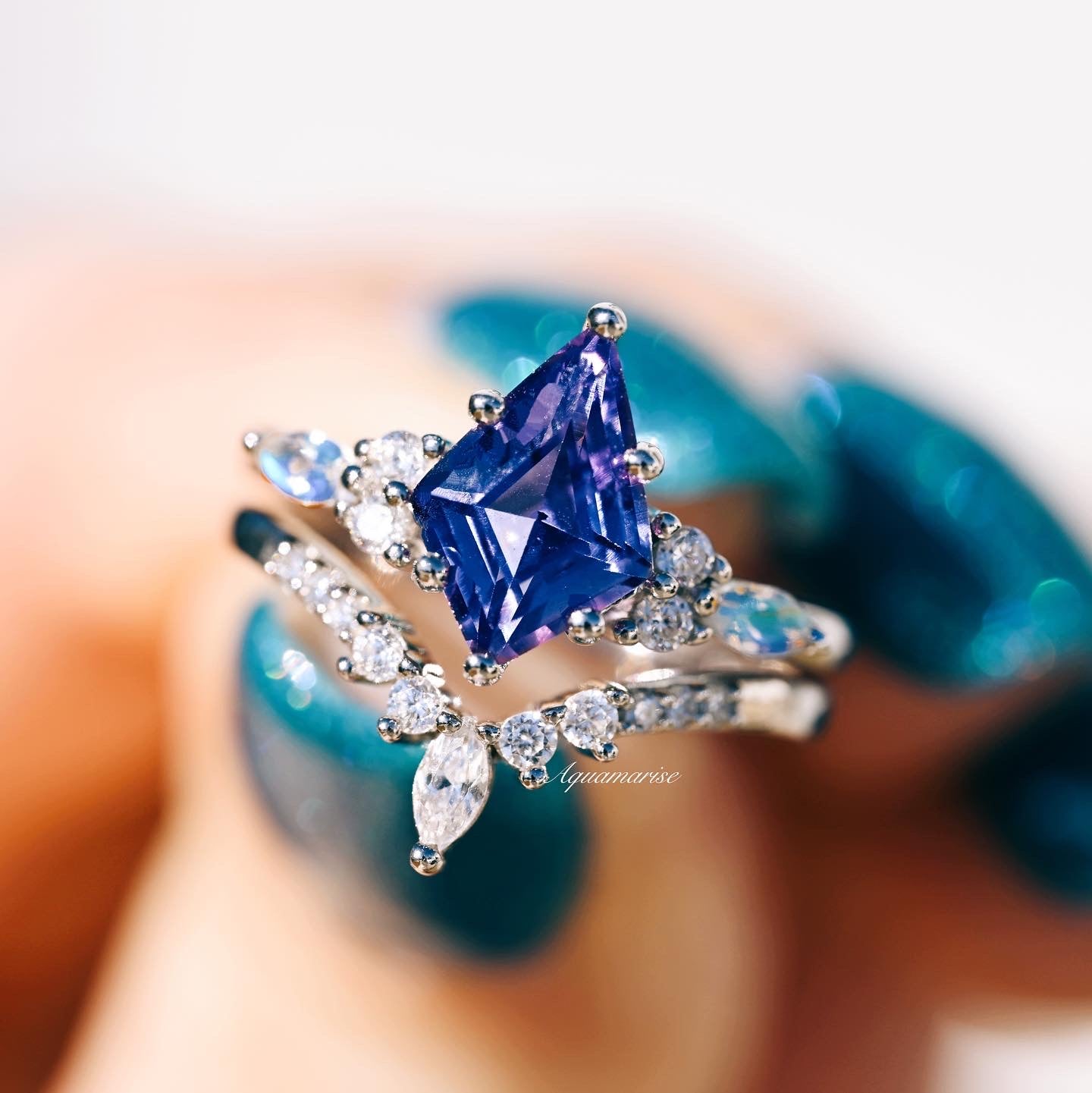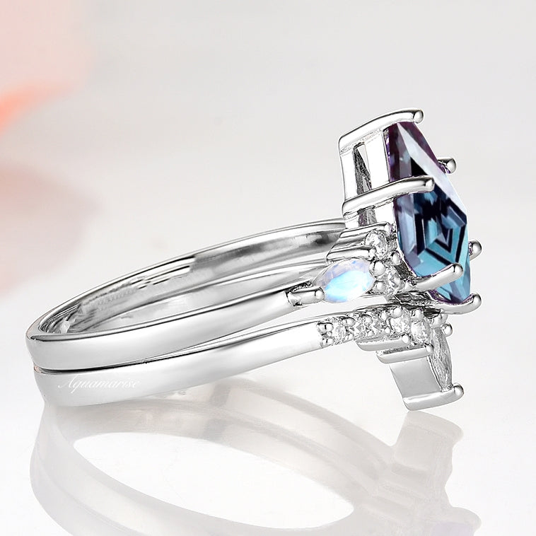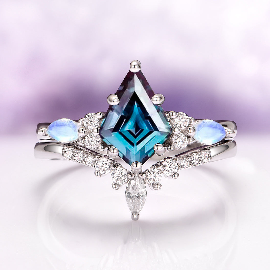 Skye Kite® Alexandrite & Moonstone Engagement Ring Set- 14K White Gold