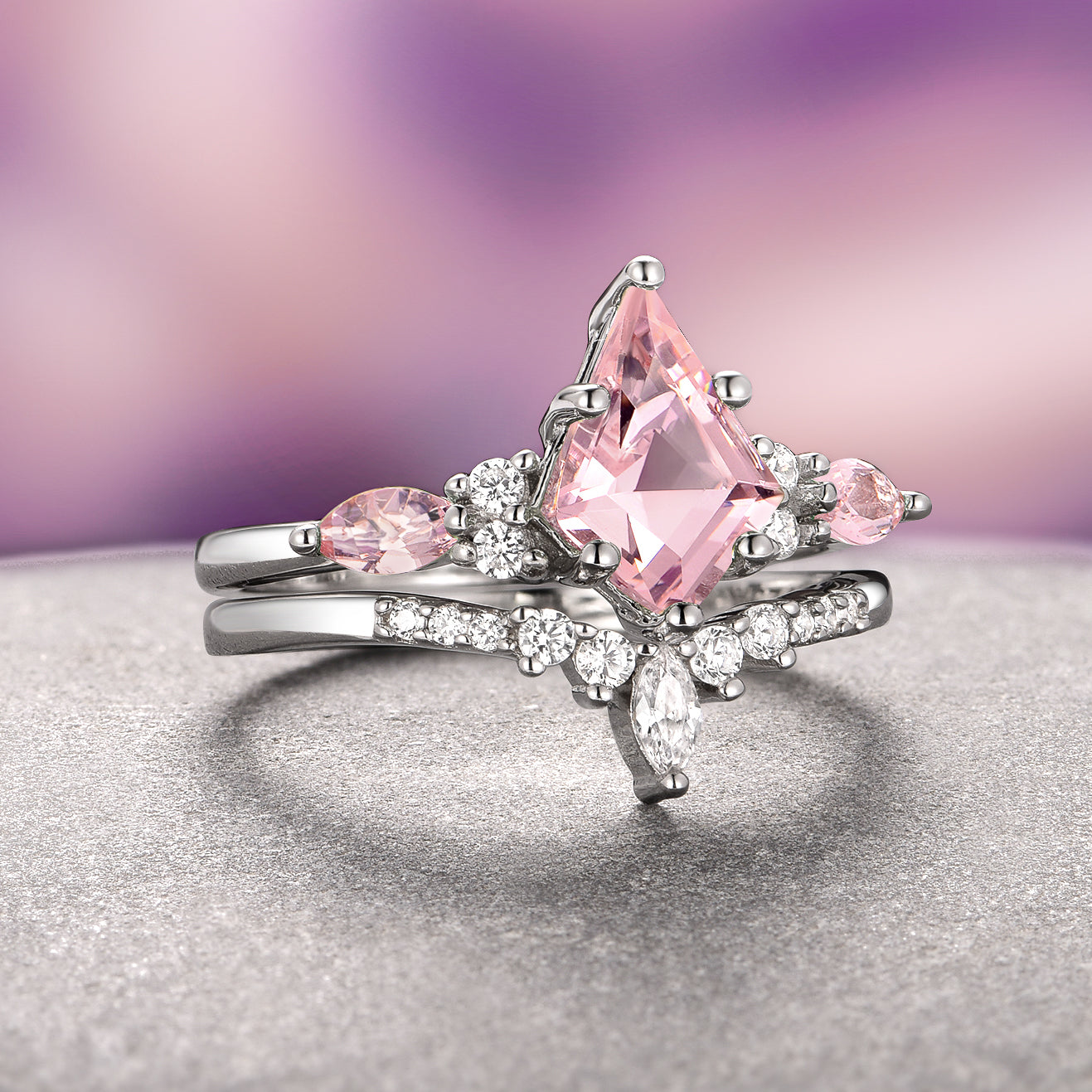 Embrace nature's elegance with our exquisite Morganite Ring Set, beautifully crafted in 14K solid white gold.