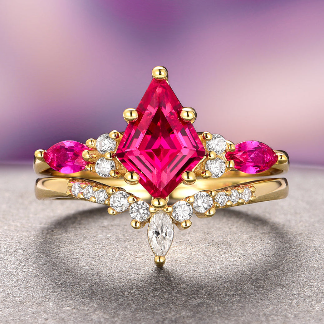 Skye Kite® Ruby Engagement Ring Set- 14K Solid Yellow Gold