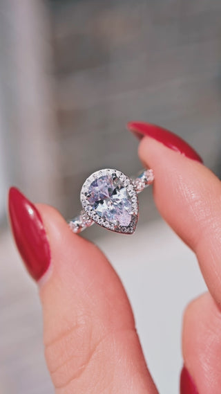 Luxe Pear Cut Moissanite Engagement Ring in 14K White Gold