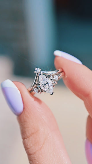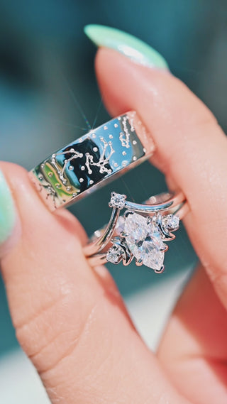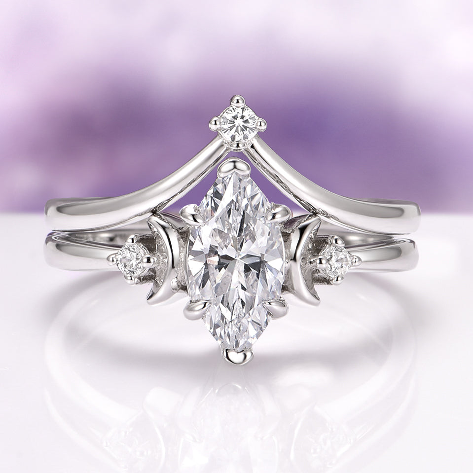 Moissanite Crescent Moon Ring Set in Sterling Silver