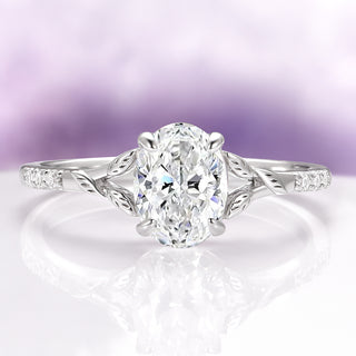 Oval Cut Moissanite & Blue Sapphire Leaf Engagement Ring Set in 14K White Gold