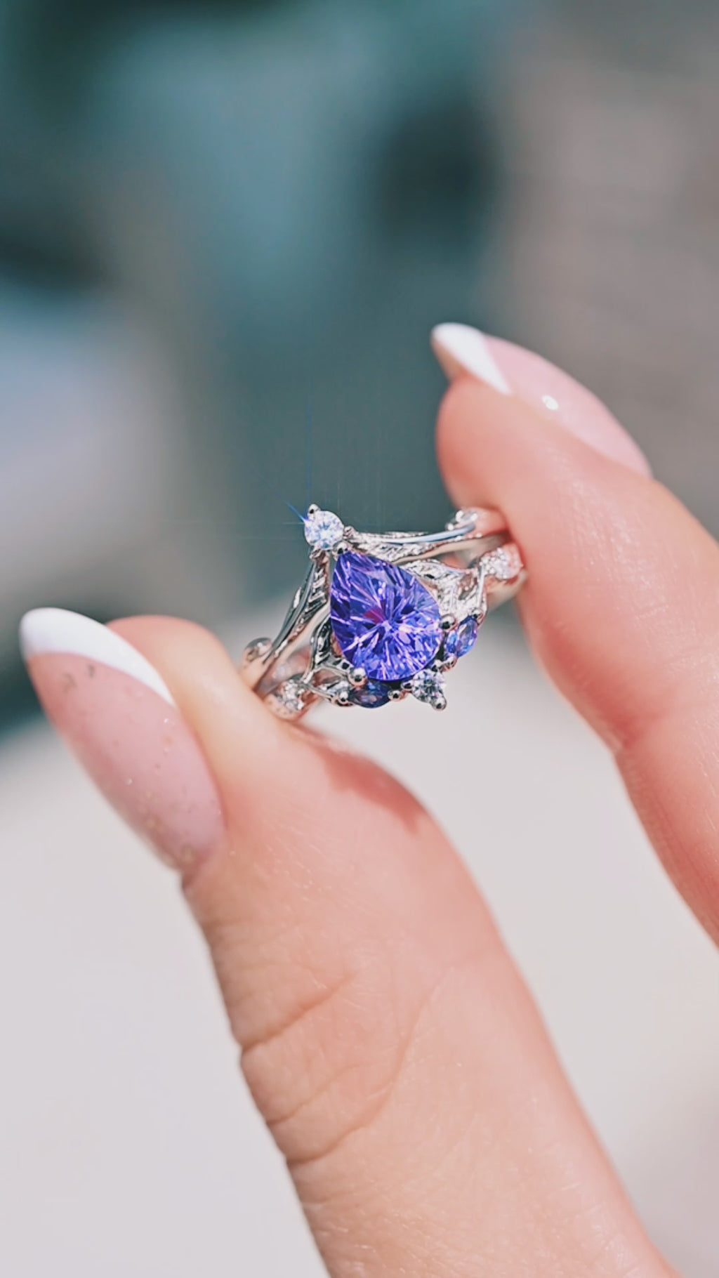 ►Whether as an engagement ring or a meaningful gift, the Aerie Star Cut Lavender Sapphire Ring Set is a symbol of your one-of-a-kind love, combining modern elegance with celestial inspiration.